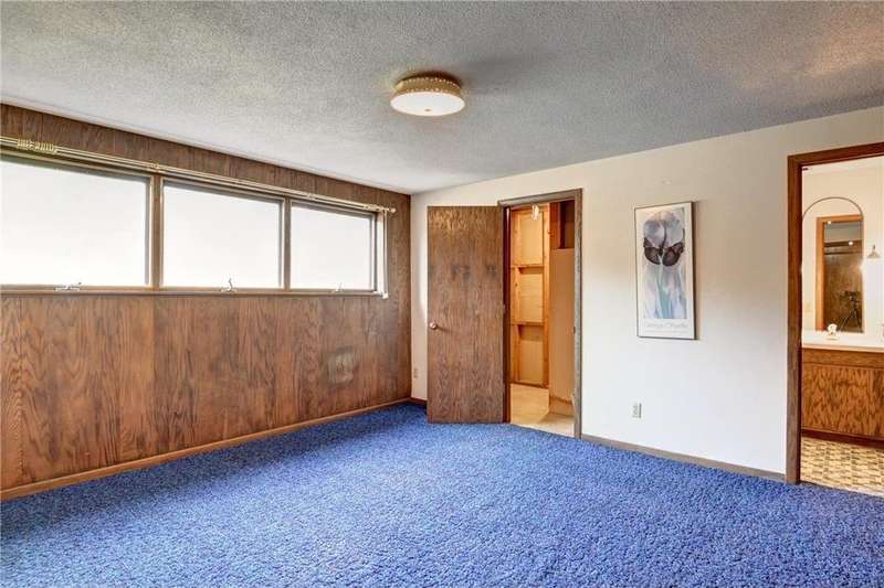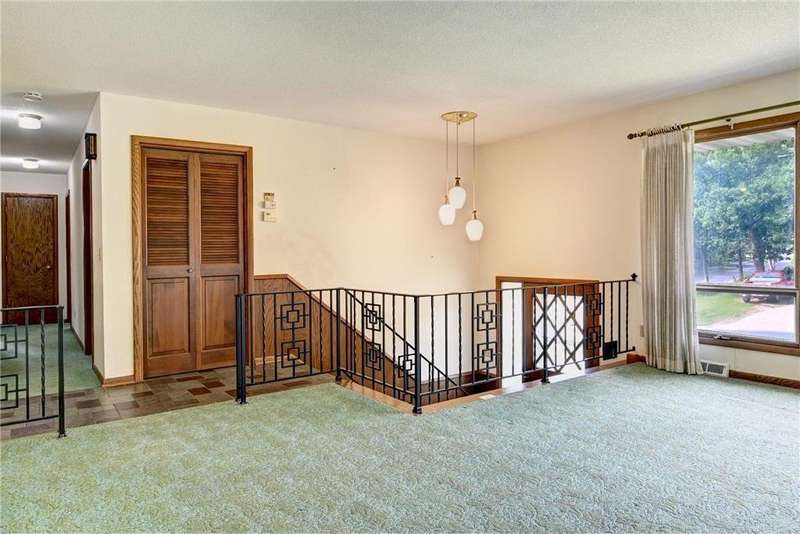Spacious split-entry home with mid-century character and modern potential, offering 1,856 Sq. Ft. on the main level. The floor plan includes a combined kitchen, dining, and family area with a corner fireplace and access to deck. Three bedrooms with hardwood floors are located on one side of the home, while the private ensuite bedroom-featuring a walk-in-closet and corner fireplace- is tucked off the family room. The lower lookout level provides flexibility with a kitchenette, bedroom, bath and "L" shaped amusement room with a fireplace - ideal for extended living or guest space. An oversized two-car garage with double doors has access to the backyard. Much of the home reflects its original mid-century style, giving new owners the opportunity to personalize updates while enjoying solid construction and a sought-after neighborhood. The treed corner lot is near parks, dining, shopping, school, and bus line, with convenient access to downtown Minneapolis.