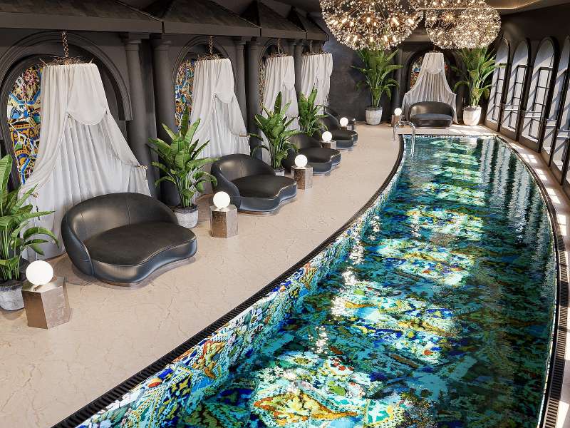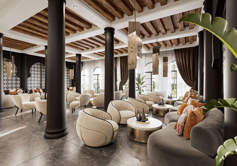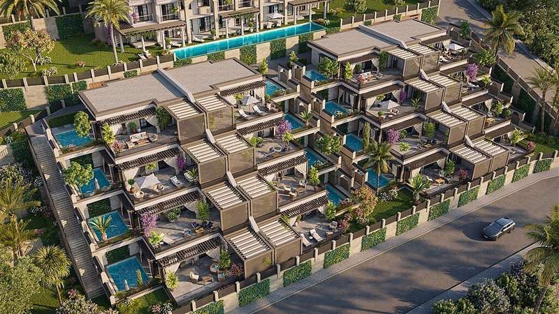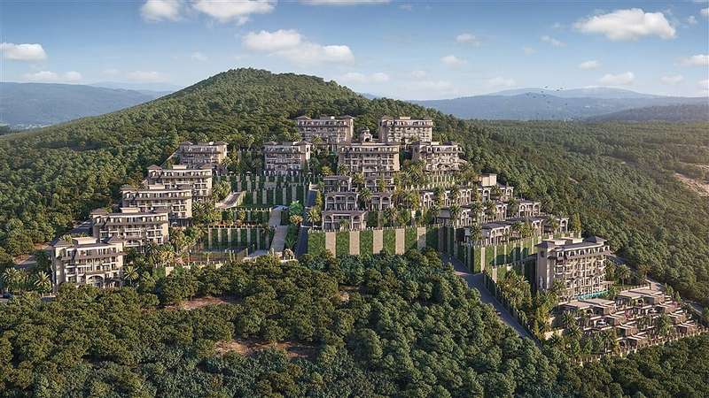 The hotel concept project has social facilities such as indoor and outdoor swimming pools, spa center, sauna, large communal garden areas, indoor and outdoor children's playgrounds, and car parking spaces.