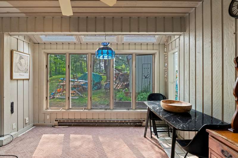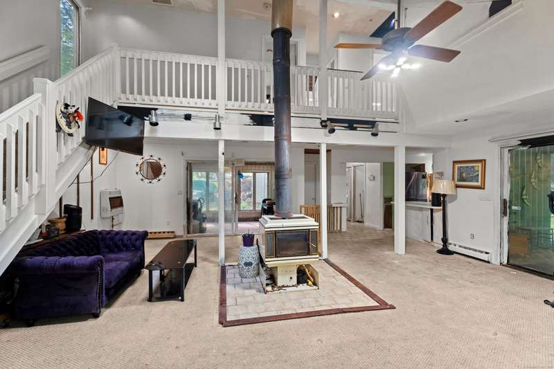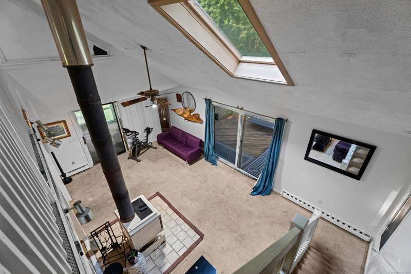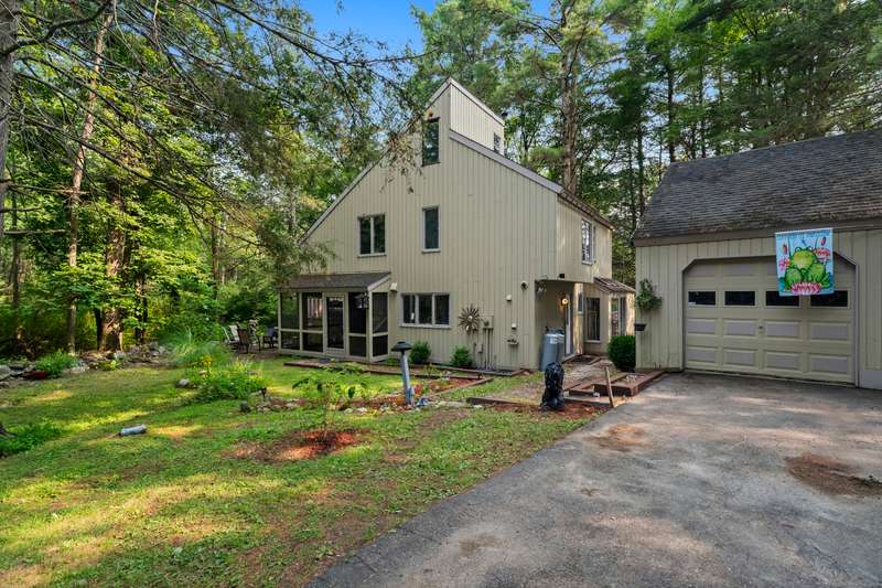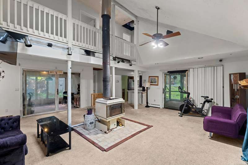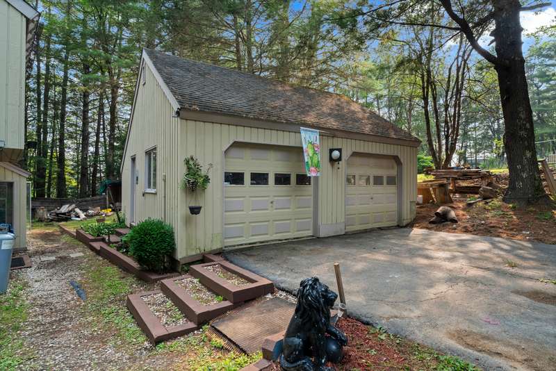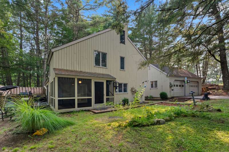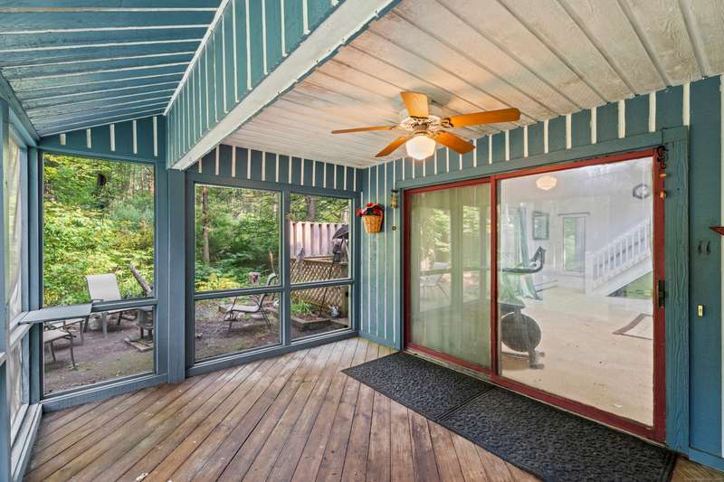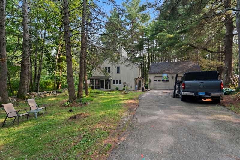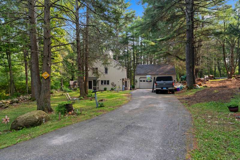 Welcome to this inviting 3-bedroom, 1.5-bath Colonial offering character, comfort, and flexible living spaces in a desirable Goshen community. The main level features a bright living room centered around a cozy wood stove, perfect for gathering and relaxation. A sunroom filled with natural light provides the ideal spot to enjoy morning coffee or quiet afternoons, while the spacious loft adds versatility for a home office, studio, or additional lounge space. Step outside to a private deck, perfect for entertaining or simply enjoying the peaceful surroundings. A detached two-car garage ensures ample parking and storage, while HOA amenities offer added convenience and lifestyle perks. With its thoughtful design and desirable location, this home is an excellent opportunity to enjoy both comfort and community in Goshen. The propertie's large and secluded grounds are surrounded by Mohawk Mountain forestry, offering a serene environment teeming with wildlife. Woodridge Lake residents enjoy ac