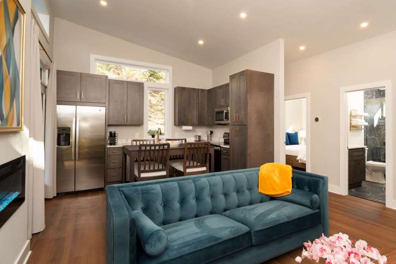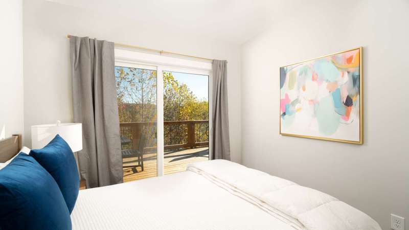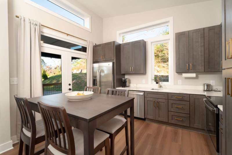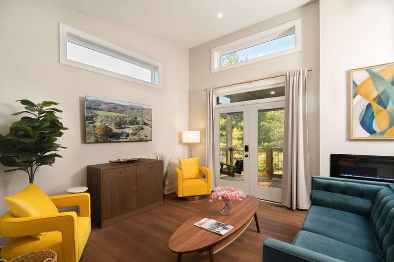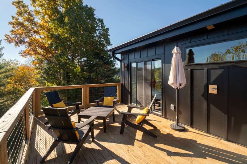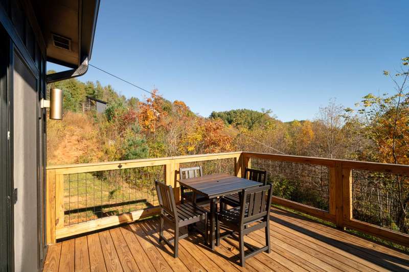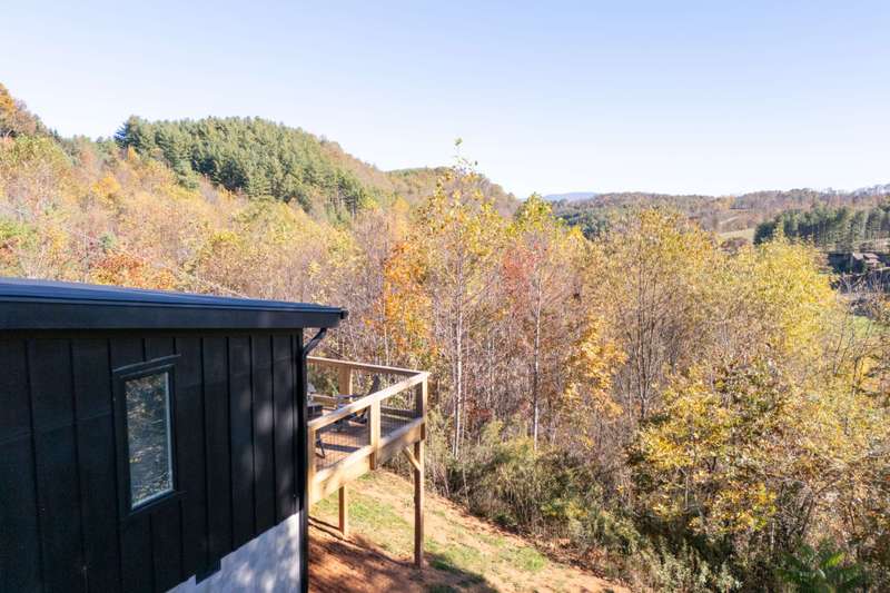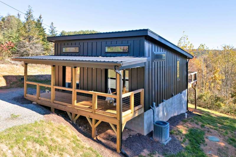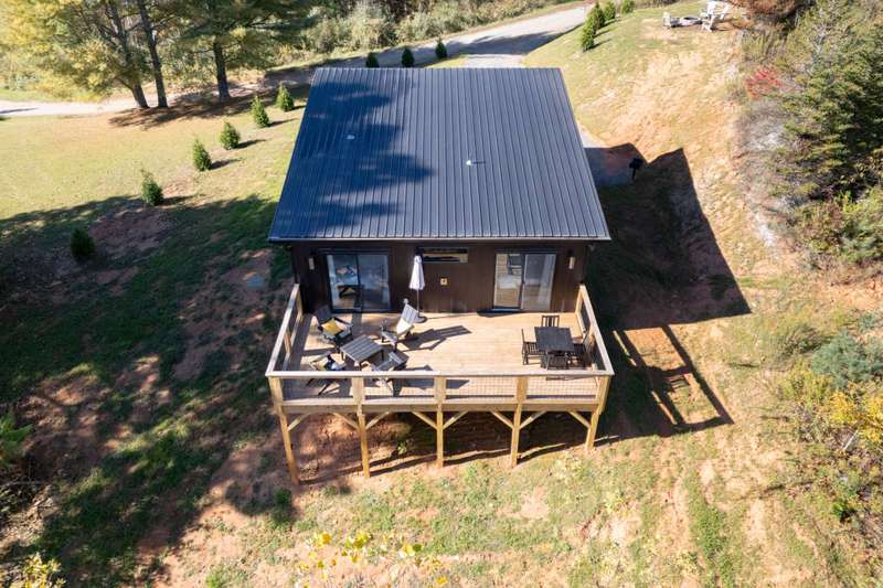 This modern 2-bedroom, 1-bath mountain home delivers on maximizing light and views with large windows and vaulted ceilings throughout. Completed in 2025, the modern decor creates a sense of calm and allows you to focus on relaxation. Enjoy the views from both inside the home and outside on the 300 square foot deck overlooking rolling mountains and long-range peaks in the distance. The front porch is a great spot for sunsets, and the adjacent fire pit area with Adirondack chairs is a great place for connecting with friends and family while roasting marshmallows and stargazing. The home features an open concept living room with dining and gourmet kitchen, all with vaulted ceilings. The kitchen has expansive cabinet space, GE stainless steel appliances, and quartz countertops. The two equally sized bedrooms feature nice-sized closets and sliding doors to access the deck. The bathroom is sleek and modern with quartz countertops and porcelain tile floors, and a shower. The home is fully furnished and comes complete with a fully stocked kitchen, bed and bath linens. Short-term rentals are allowed, and the home is currently on Airbnb. The New River is within walking distance and is well known for its multiple recreation opportunities, including kayaking, tubing, and fishing. Call for more information or a private viewing of our listing W142.
