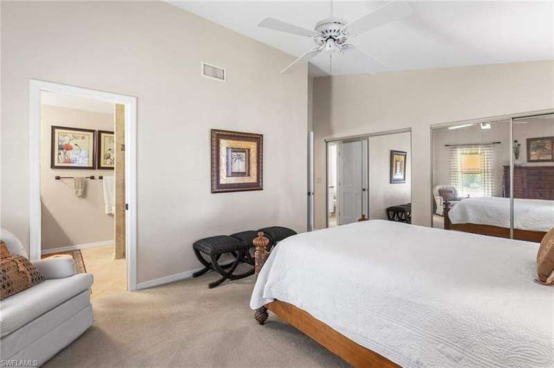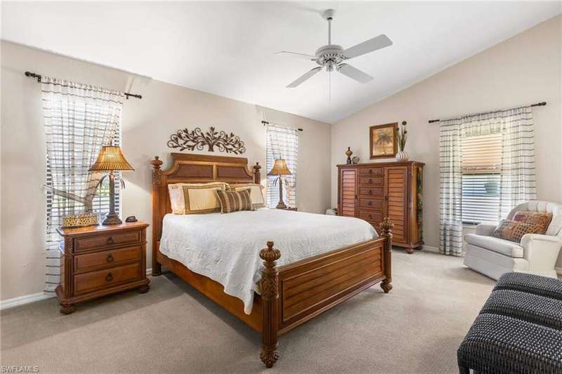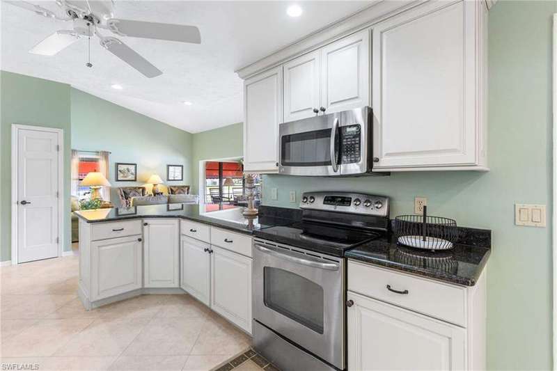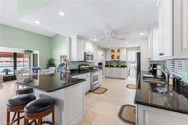 YOU DO NOT WANT TO MISS THIS!! Gorgeously UPDATED, this "condo-home" sits perfectly on a QUIET CORNER LOT, with incredible LAKE VIEWS and S/SW Exposure. Offering 2 bedrooms, a MASSIVE DEN/ FLEX SPACE, 2.5 bathrooms, and a 2-CAR GARAGE, it is the perfect space for anyone looking for a SPACIOUS AND COZY RETREAT. Inside, you'll find a chef's dream with BLACK GRANITE counters, STAINLESS-STEEL appliances, antique white SOFT-CLOSE CABINETS, and a LIGHTED BUFFET. The kitchen has been OPENED UP AND UPDATED, making entertaining friends and family a breeze. The neutral tile throughout the main living areas and the plush neutral carpet in the bedrooms and den create a modern and stylish space you're sure to love. Enjoy incredible lake views from your ENCLOSED LANAI, providing a peaceful and picturesque backdrop to your daily life, while the UPDATED BATHS add a touch of luxury. The community CABANA & POOL are just steps away, providing a convenient and refreshing way to cool off on hot summer days. The BUNDLED GOLF community of Cross Creek Country Club is pet-friendly, active, and offers tons of amenities, like a main pool and spa, restaurant/bar, tennis, pickleball, & bocce. So many inclusions (cable/internet, lawn care, irrigation water, exterior/roof insurance, and more), the amenities, low taxes, upgrades, and prime location make this home a rated "BEST VALUE BUY." It is ideally located on the Daniel's Corridor where you'll find ample shopping, dining, and entertainment, between the Twins' and Red Sox's training stadiums, and a short drive from RSW International Airport and SWFL's finest beaches. Don't miss out on this - schedule a showing today and make this house your new home!