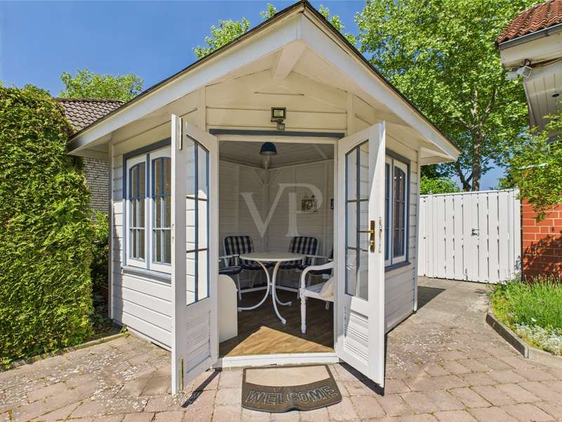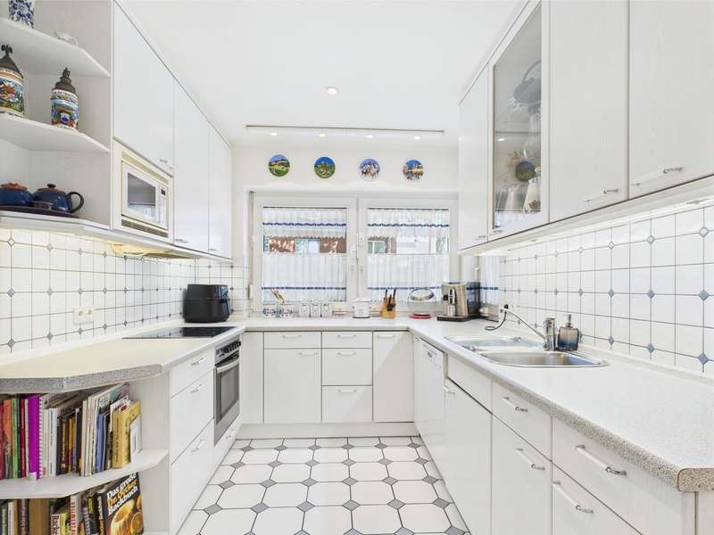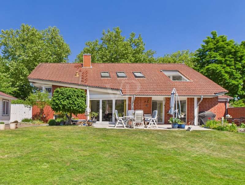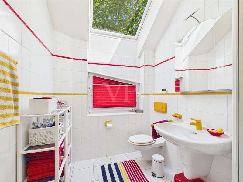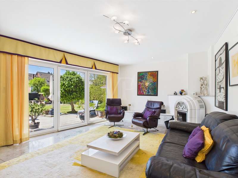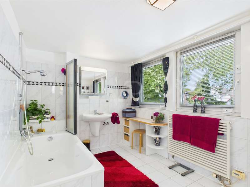 For sale is a detached house built in 1992 on a plot of approx. 911 m² in solid construction with a living space of approx. 196 m². The room layout in split-level architecture ensures exciting transitions between the different areas of the house and creates a feeling of openness and spaciousness. The first floor of the spacious and equally elegant home is entered via the vestibule. From here, you enter the guest WC with shower and the former adjoining garage, which was converted into a guest area in 2000. It continues into the hallway, from which the study, the living area and the dining room with access to the kitchen branch off. The living area has a fireplace. Access to the terrace is possible from both the living area and the study. A staircase leads to the first level, where there are two children's bedrooms, each with access to the balcony, and a bathroom with shower. On the second level, which can be reached via another staircase, is the parents' area with a large bathroom, dressing room and bedroom with access to the balcony. Further steps lead from here to the comfortably converted attic and a small storage room. In the basement there are two storage rooms and the boiler room with access to the garden. The beautifully landscaped, fully enclosed garden with pond and pavilion is a wonderful place to relax. A solidly built shelter offers the possibility of installing a whirlpool. Two garages are located right next to the property and can be accessed directly from the garden. There is also a carport with shed on the property. A truly beautiful and well thought-out property, be inspired by the photos and arrange a viewing!