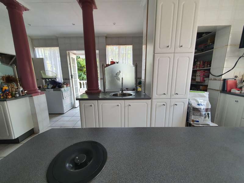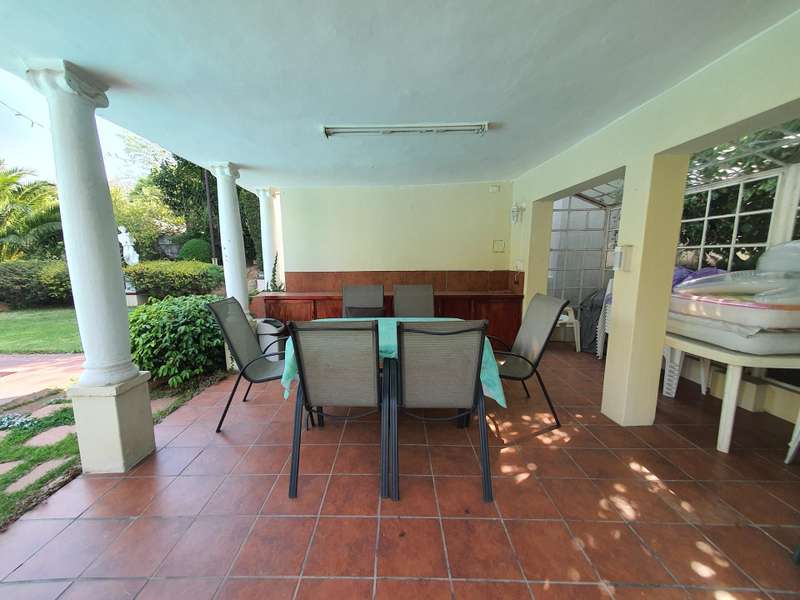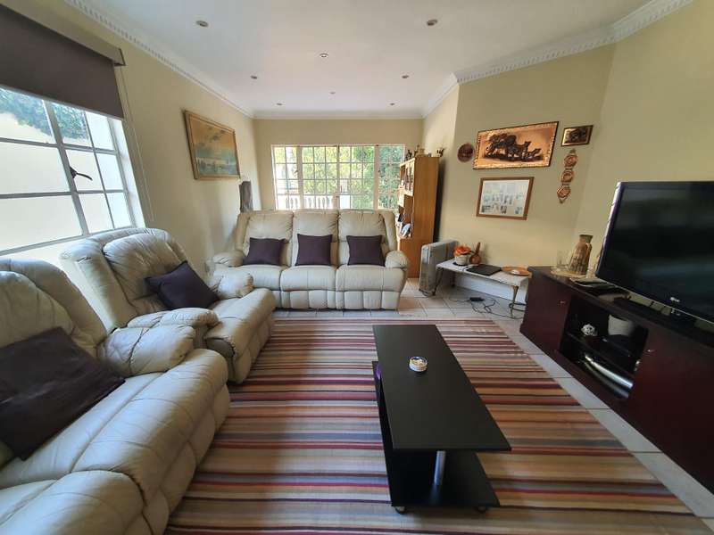 LOVELY SPACIOUS 4 BEDROOM HOME WITH A FULLY MODERN SELF CONTAINED COTTAGE Situated on a large stand ( 1318m/2) , nestled behind high walls , the home is private , with beautifully landscaped garden and a sparkling blue pool . The electrical system has been rewired, upgraded ceiling lights and many more features to this immaculate and well maintained home. Downstairs you find an entrance hall , powder room , spacious open plan lounge and dining room , leading to the family room. The family room has doors out onto the back patio. Large eat in kitchen with a centre island, pantry , separate scullery and laundry cupboards. Pre paid electricity The family room has doors out onto the back patio. Large eat in kitchen with a centre island, pantry , separate scullery and laundry cupboards. Upstairs you have 4 spacious bedrooms with build in cupboards and 3 bathrooms (2 en suite) . Study . The back garden brags with a lovely entertainment area , a deck to enjoy the view and sunsets and a sparkling blue pool. Modern self contained cottage , one bedroom, kitchen and living room ( with a beautiful view of the garden ) bathroom. Excellent security: alarm system , beams. Garage for 5 cars. A MUST SEE PROPERTY. PHONE TODAY FOR YOUR PRIVATE VIEWING