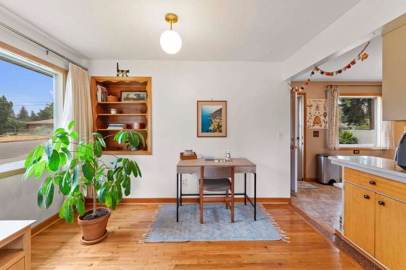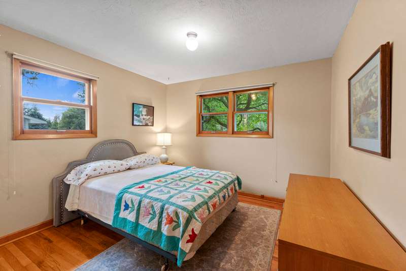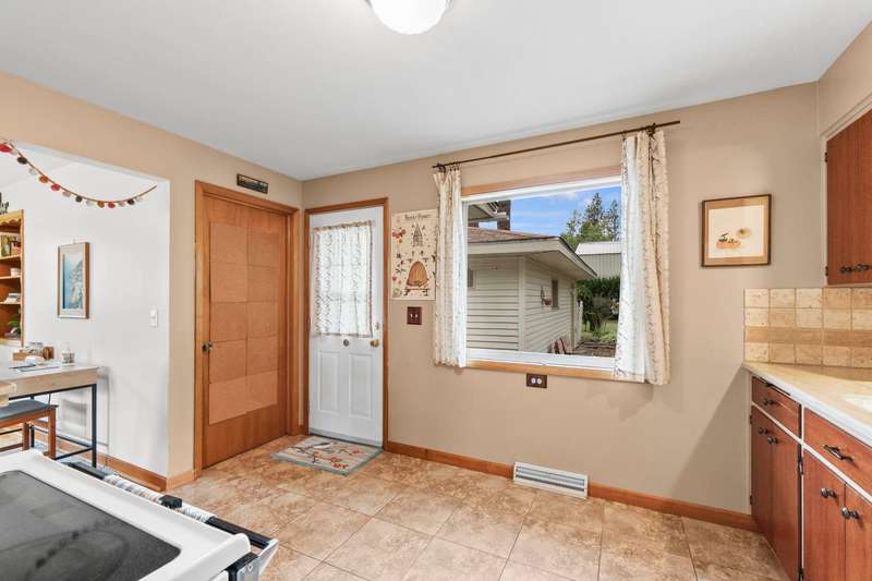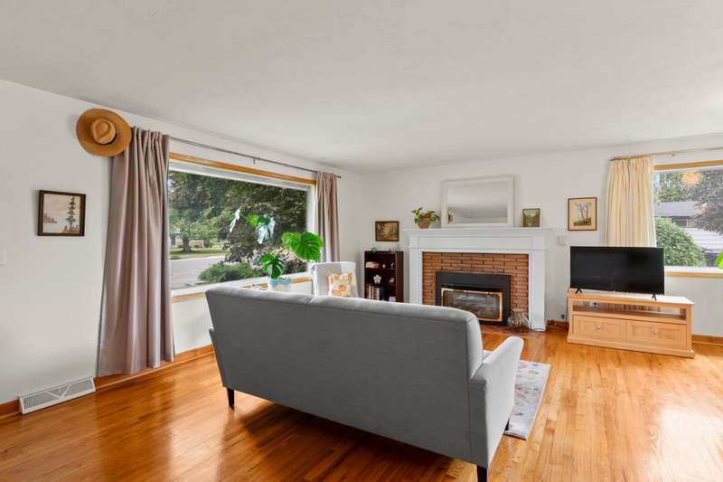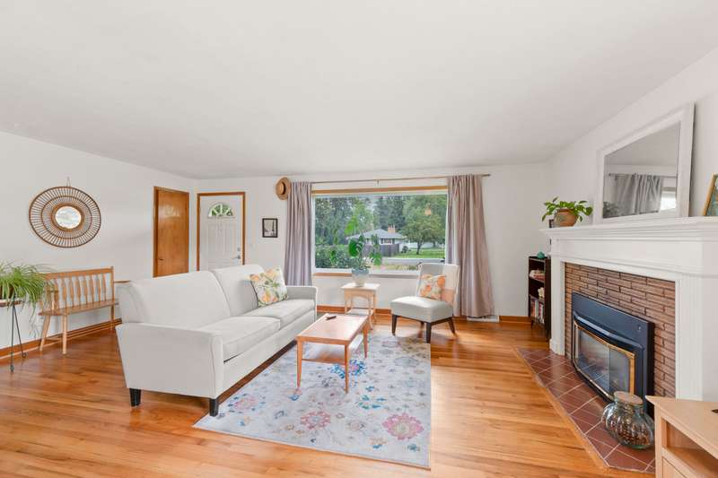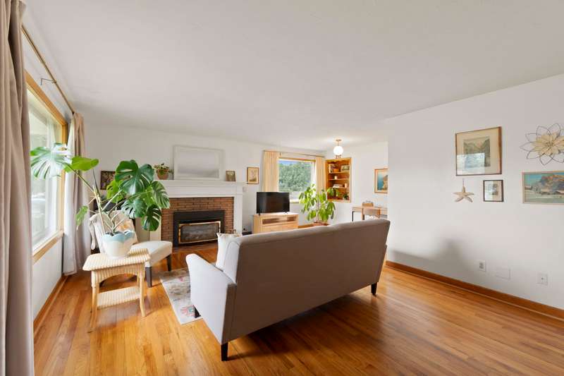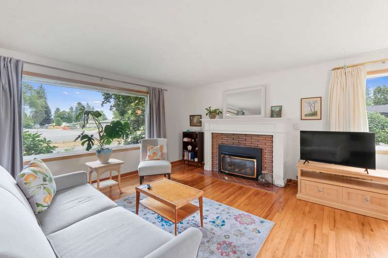 Walk to Terrace View Park! This exceptional 1956 Valley rancher will put you at ease with the instant comforts of home. From the original hardwood floors and built-ins, to choice and carefully selected updates, this home has received meticulous care throughout the years. The main floor offers 3 bedrooms, one with a walk-out slider to the beautiful backyard retreat, and one spacious full bathroom kept true to the 1950s style. The living/dining area is accented by a gorgeous gas fireplace and mantel which lend a touch of elegance to the simplicity of this era. Large pictures windows compliment every wall. The kitchen retains loads of charm from yesteryear with benefits of newer appliances, solid surface counters, and updated floors. Out the back door is an easy escape to the amazing and private patio just steps to your detached 2-car garage and gated RV parking in an oasis of fenced gardens and backyard. Downstairs offers finished rec room, laundry, and room to add another bedroom and bath.