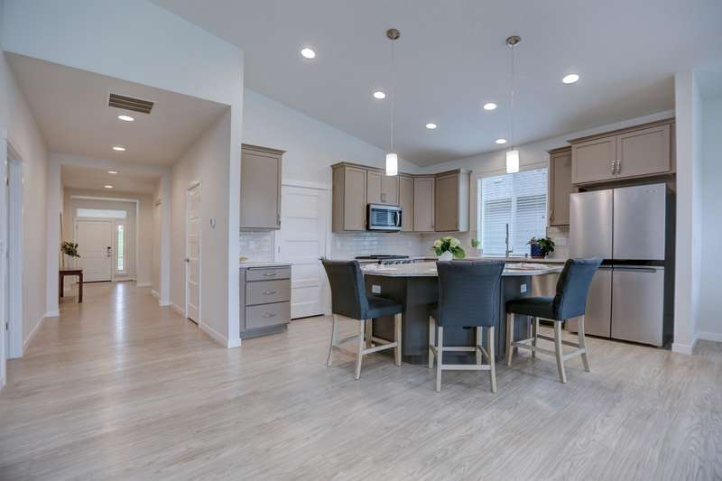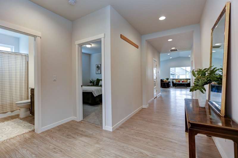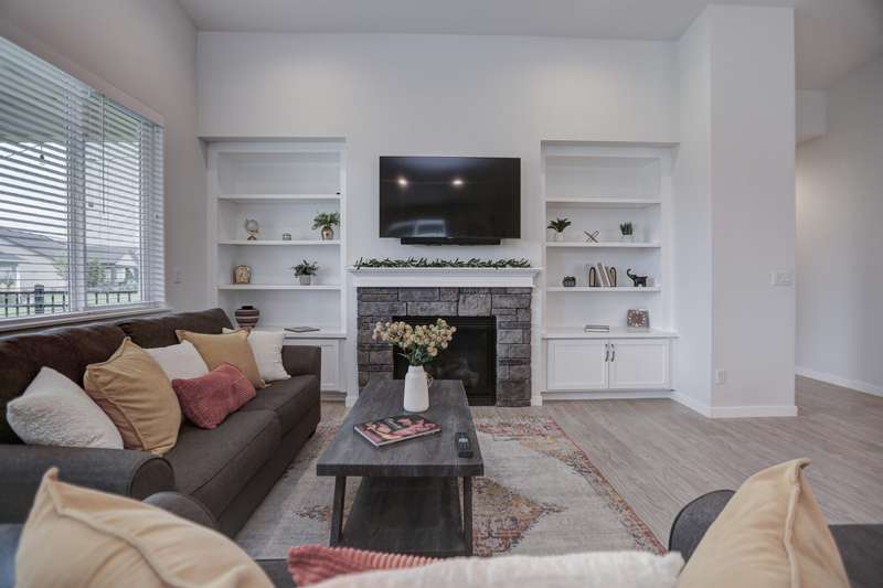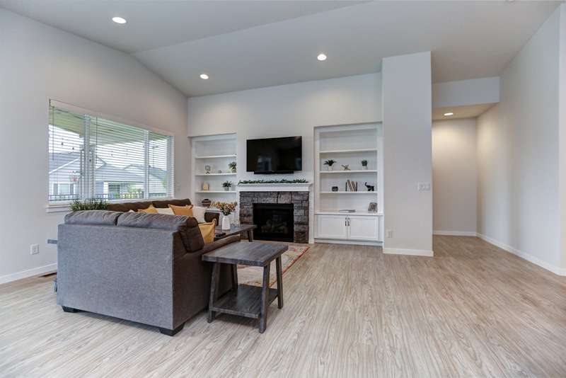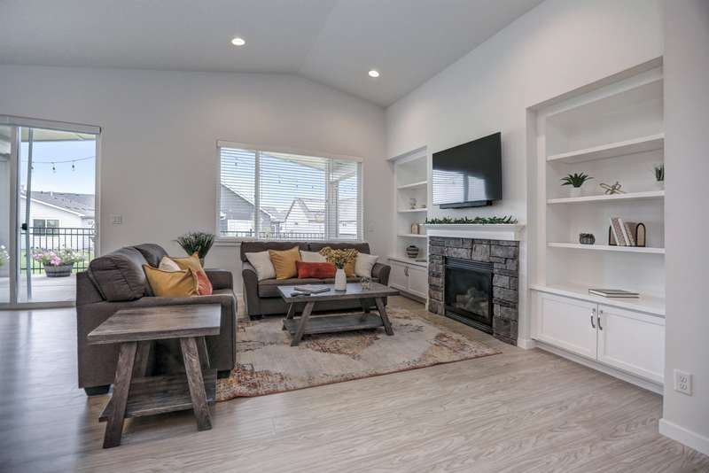 Beautifully maintained 3br/2ba home in Trutina 55+ community. Welcome to this stunning single-level home, thoughtfully designed for comfort & style. The heart of the home is the gorgeous kitchen, feat. quartz counters, gas cooktop, spacious center island, abundant cabinetry & walk-in pantry, perfect for anyone who loves to cook & entertain. The primary suite offers a true retreat w/walk-in shower, dual sinks & generous walk-in closet. The open living area is warm & inviting, complete with a cozy fireplace & custom built-in cabinets. Step outside to your private covered patio, accented with wrought-iron fencing, overhead lighting & lush green space between homes, creating the perfect setting for relaxation or gatherings. As a resident of Trutina, you'll enjoy an active, resort-style lifestyle with exclusive access to the community lodge, indoor saltwater pool, hot tub, fitness center, movie room, community kitchen, gathering spaces, pickleball, gardens & river & trail views!