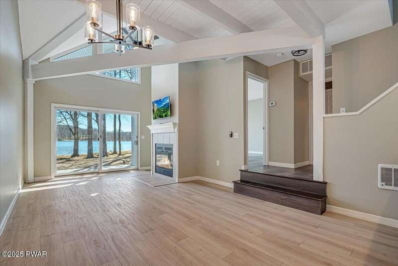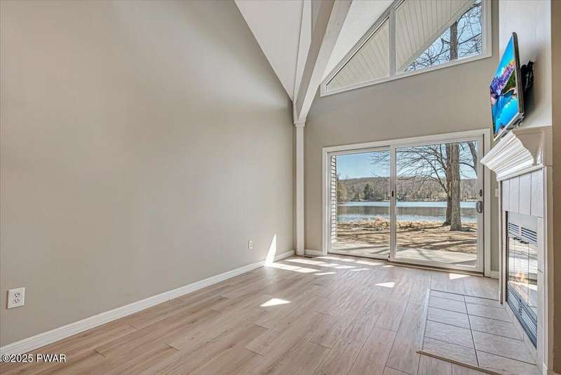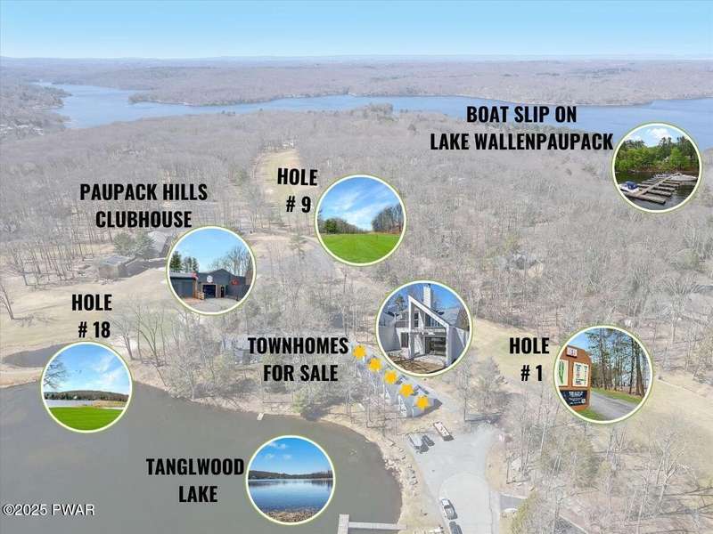 Unbeatable location nestled directly between the tranquil shores of Tanglwood Lake and holes one and eighteen of Paupack Hills Golf Course. Laurel Hill Townhomes at Paupack Hills is a brand-new-to-market community is offering its final end unit for sale. Included with sale: Ability to rent a boat slip on Lake Wallenpaupack at The Retreat starting 2026 boating season. Each home offers 2 bedrooms, 2 full baths, and an open-concept layout with a wood-burning fireplace perfect for easy living or entertaining. Enjoy lakefront decks overlooking a peaceful, park-like setting. The exterior you'll find brand new vinyl siding, and inside, brand new sleek vinyl plank flooring, fresh paint, updated fixtures, and new modern stainless-steel appliances. Central air conditioning ensures year-round comfort. Step outside and walk to the golf course clubhouse or take advantage of your private townhome owners' dock on Tanglwood Lake--perfect for launching a kayak, canoe, or casting a line for an afternoon of fishing on the quiet, non-motorized water. Owners enjoy full access to the Tanglwood Lakes community amenities--private beach on Wallenpaupack, tennis courts, playground, and 24/7 security. Short-term rentals are permitted, offering flexibility for personal use or investment potential. Whether you're seeking a serene escape or a smart rental property, Tanglwood Townhomes offers the best of both worlds--golf and lake life at your doorstep.