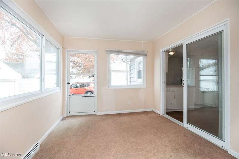 Move right in to this charming 3-bedroom ranch offering approx. 1,080 sq. ft. of comfortable living space on an attractive, well-kept street. Great curb appeal welcomes you inside to a bright living room highlighted by an attractive bay window that fills the space with natural light. The eat-in kitchen is conveniently located just off the living area, with easy access to the inviting sunroom overlooking the partially fenced backyard. Enjoy outdoor living on the covered patio attached to the detached 1.5-car garage. Freshly painted interior and new carpet throughout make this home truly move-in ready. A full basement provides excellent storage and the potential for additional living or hobby space. This is a wonderful opportunity to own a well-maintained ranch with plenty of charm, inside and out.