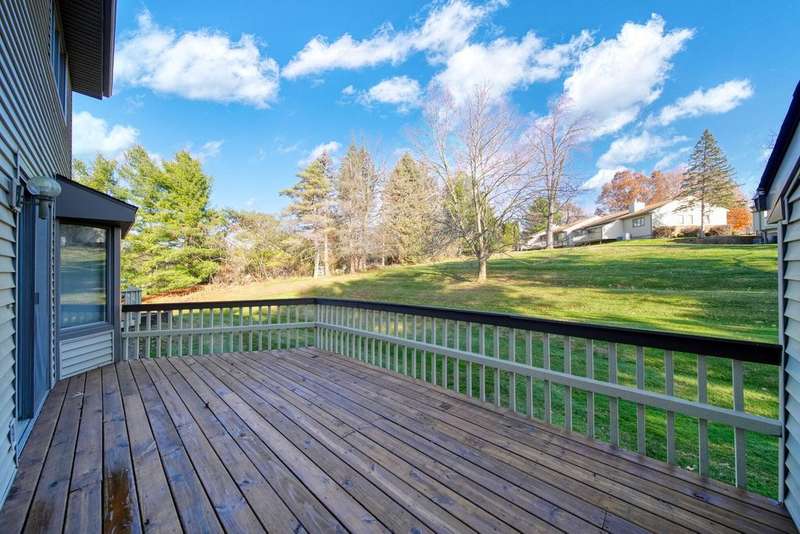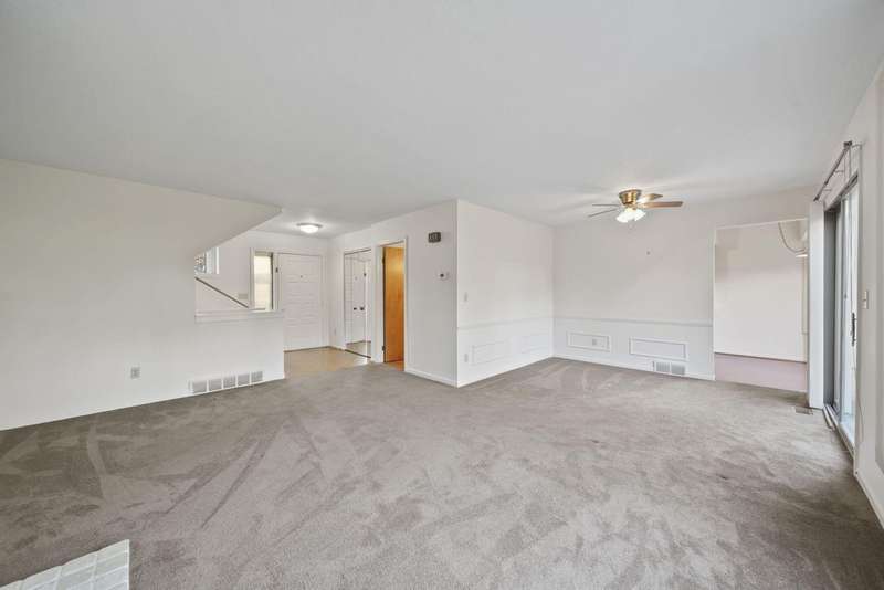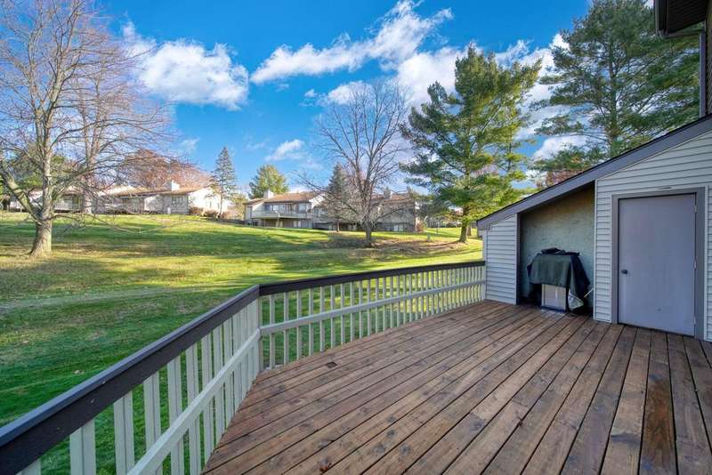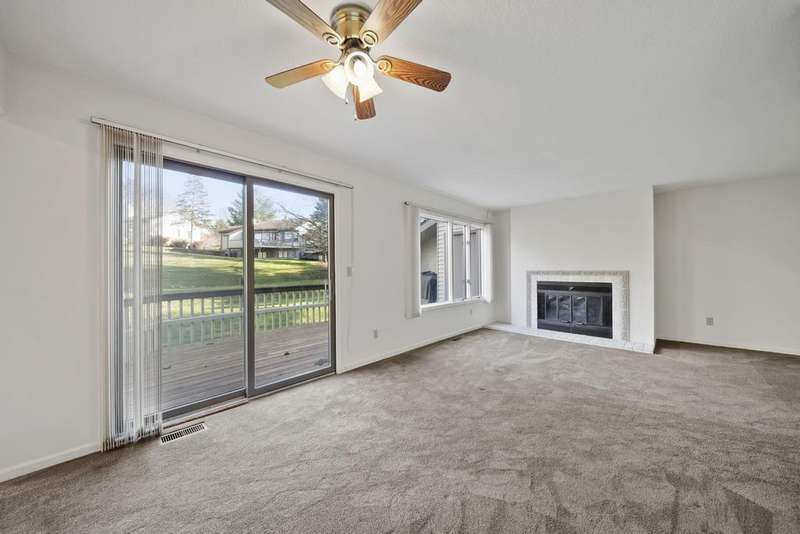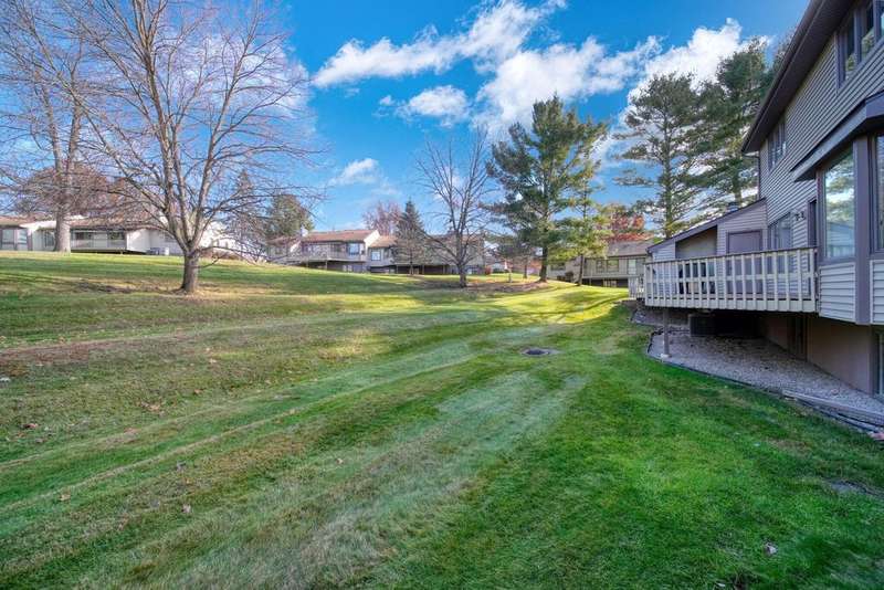 Maintenance-Free Living! Enjoy easy, maintenance-free living in this beautiful Timber Meadows condo. The main level features an open floor plan with a dining area and a cozy living room complete with a gas fireplace and slider leading to a deck overlooking a private, peaceful backdrop. The eat-in kitchen offers plenty of space, and the main-level half bath and laundry add convenience. Upstairs, you'll find a spacious primary suite with a walk-in closet, along with a generously sized second bedroom. The finished basement provides even more living space with a third bedroom, a family room, and plenty of storage. Association fees cover lawn maintenance, snow removal, Building maintenance, sprinkler upkeep, and trash service?making carefree living a breeze. This condo has everything you need for comfort, convenience, and a low-maintenance lifestyle!