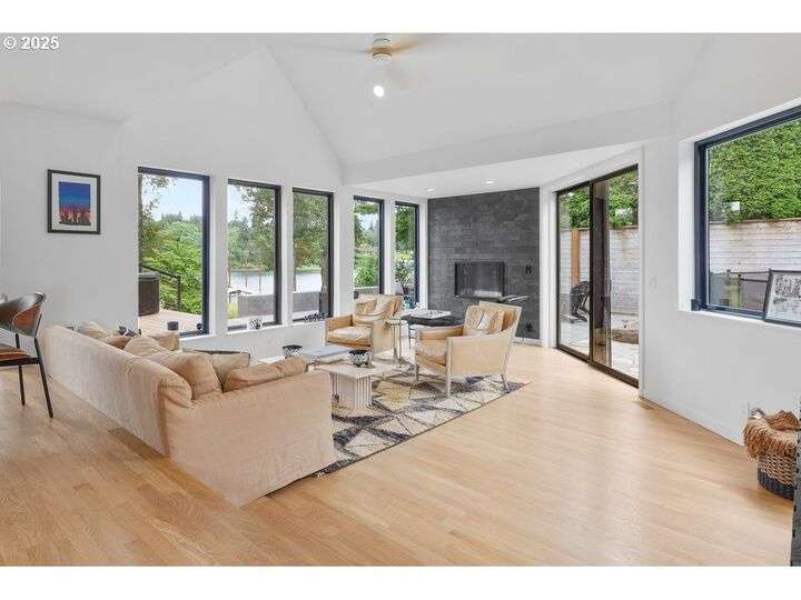 Luxury Riverfront Oasis. Call to ask about our lease opportunity $9,900- $11,000 per month. Experience the ultimate in Pacific Northwest waterfront living with this opportunity on the Willamette River. Situated on just under two park-like acres in Clackamas County and within the highly sought-after Lake Oswego School District, this property is a dream retreat for entertainers and waterfront enthusiasts alike. Designed for gatherings and everyday luxury, the home features an open-concept layout with a gourmet kitchen, breakfast bar, great room, and dining area — all oriented toward the river and pool for seamless indoor-outdoor living. Beautiful white oak floors grace the entry, kitchen, and great room, setting a warm and inviting tone. The main level includes two guest bedrooms, a full bath, and a flexible office/den (potential 5th bedroom). Upstairs, the primary suite is a true sanctuary, complete with electric skylight blinds, a private sauna, and a spa-inspired bathroom featuring an expansive walk-in shower, soaking tub, and Carrera marble finishes throughout. A bonus room or 4th bedroom completes the upper level. Step outside to your own riverside paradise — complete with a sparkling pool, manicured landscaping, and pilings already in place for the reinstallation of a dock (buyer to verify). There is also the option of a dock on the east side of the island as well. (buyer to verify). Whether you're boating, entertaining, or simply enjoying the serene surroundings, this home offers unmatched lifestyle potential. This is a rare chance to own one of Lake Oswego’s few estate-style riverfront homes with acreage, dock potential, and a luxurious entertainer’s layout.