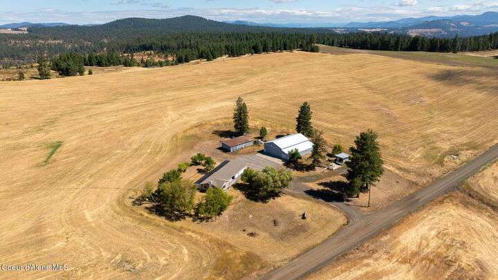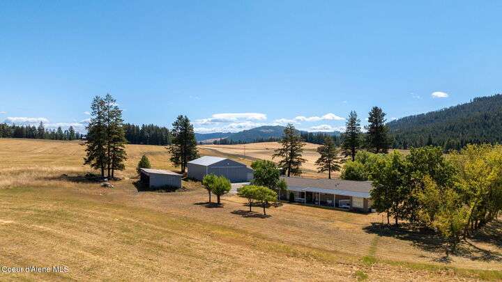 A rare North Idaho legacy—240 acres near Heyburn State Park at the south end of Lake Coeur d'Alene, just 35 minutes to Coeur d'Alene. This one-of-a-kind homestead offers 124 acres of productive farmland, with the balance in rolling pasture and timber. A well-kept 2,000 sqft home features 4 beds, 2 baths, and a 3-car garage. A large shop with water/sewer hookups and an additional equipment barn provide ample storage and functionality. In the same family for decades, this land has been lovingly cared for. Whether you're dreaming of a working farm, private retreat, or generational estate, this is a foundation worth building on. They're not making properties like this anymore—don't miss this rare opportunity. Easily accessible and close to amenities, but still a removed and private setting.