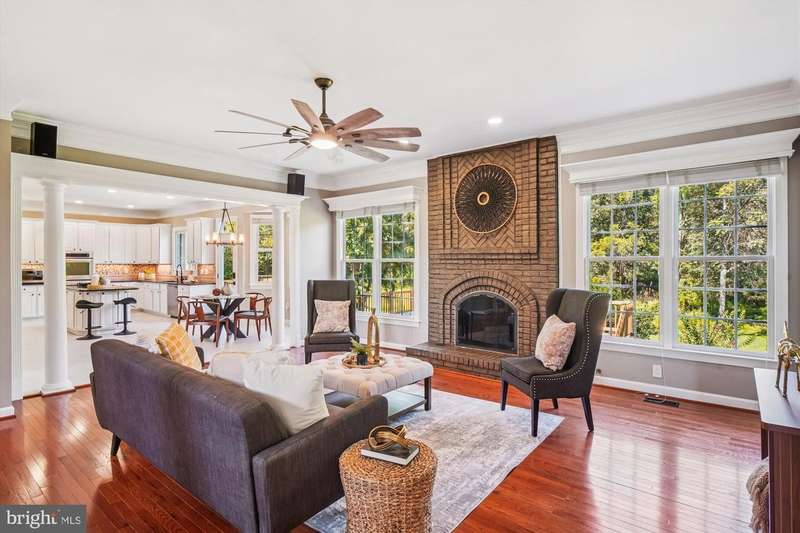 Nestled on a cul de sac and backing to Conservation land, this stately, brick 5 BR, 4.5 BA Colonial offers your own private retreat on a 2.7 acre beautifully serene lot which can be enjoyed from the new multi level deck complete with hot tub. Step into the grand two-story foyer and be greeted by Palladian accent windows, custom crown molding, and a gracefully curved central staircase. The main level includes a formal dining room with butler's pantry, a bright elegant living room, a private office, powder room, and a family room with a cozy gas fireplace framed by a charming brick accent surround. The heart of the home is the updated gourmet kitchen with new LVP tile floors, abundant white cabinets, granite counter tops, stainless steel appliances, large walk-in pantry and a massive center island for casual dining and conversation. Retreat to the spacious owner's suite with cathedral ceilings, a sitting room, two sided gas fireplace and the spa-inspired bath featuring a freestanding soaking tub, designer shower, dual vanities, and custom tile finishes. A His & Her walk-in closet with built-in organizers complete the suite. Three additional bedrooms, two full en-suite baths, and a convenient laundry room with new front loading washer/dryer round out the upper level. The fully finished, walk-out lower level offers an expansive recreation room with built in theater speakers, a fifth bedroom, a full bath, and a workout room/gym and ample storage space. The many updates include Roof (2019), new hot water heater , new Deck(2025), Solar panels (2020), refinished hardwood floors, new hardwood floors in family room, new carpet, fresh paint throughout, level 2 EV Charger-Ford Charge station pro and so much more. A prime Location for commuters, you are just 20 miles north of Washington, DC, with easy access to Route 200 (ICC), New Hampshire Ave, Georgia Ave. and minutes to Olney Village. Available VA Assumable Loan at 2.25% for qualified buyers.