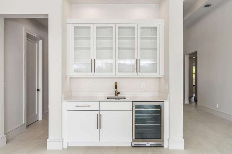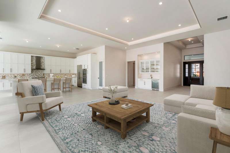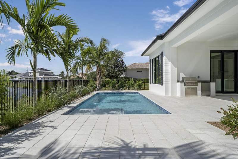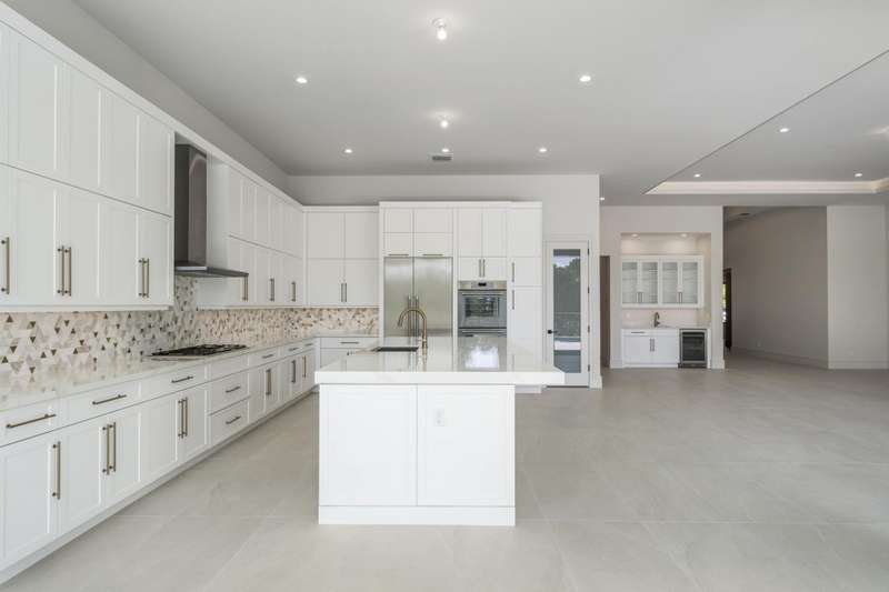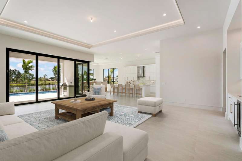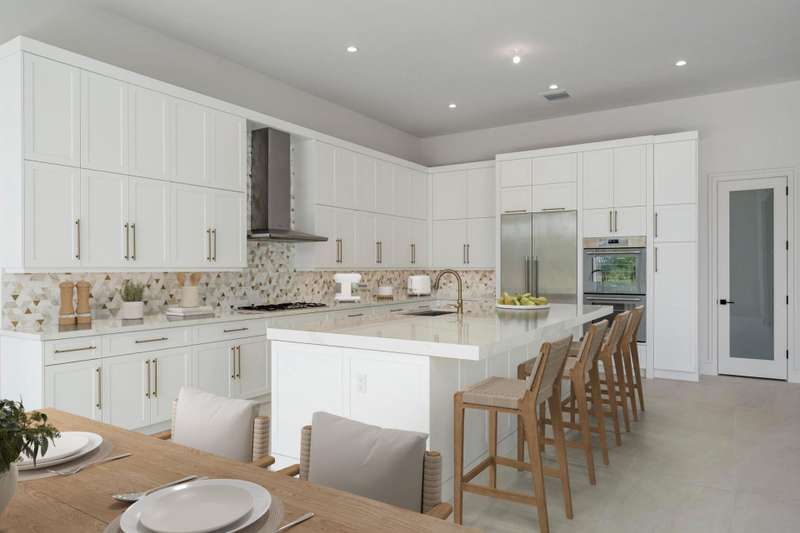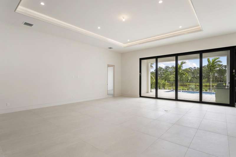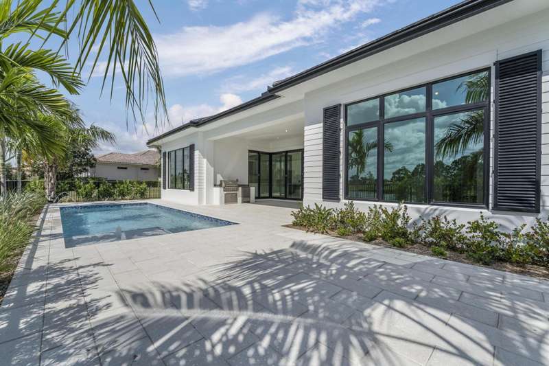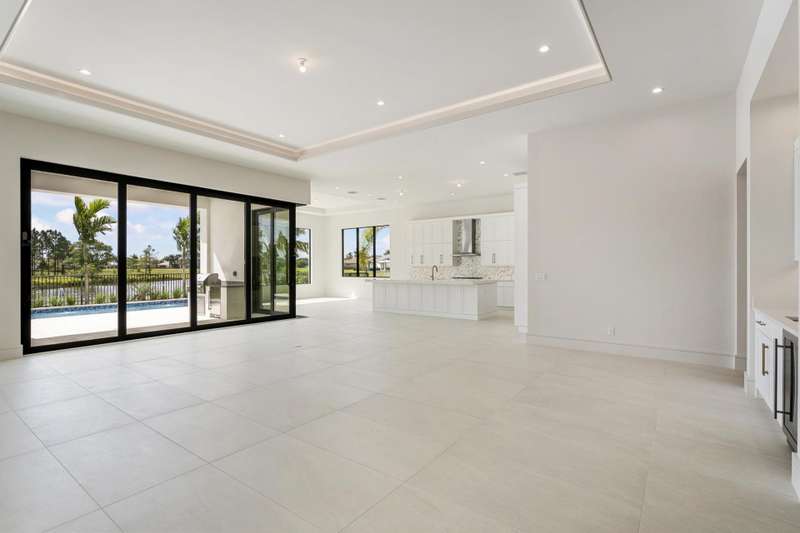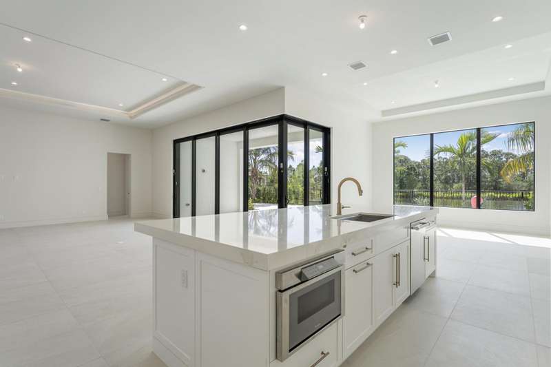 Experience the pinnacle of luxurious living with the newly constructed Augusta Custom Pool Home by Ecclestone Signature Homes. This exquisite coastal modern residence offers breathtaking water views and is located within the highly sought-after Tesoro Club, a prestigious gated golf community. This expansive one-story home features four bedrooms and 4.5 baths, complemented by a wet bar and a walk-in pantry.The open floor plan is perfectly designed for both relaxation and entertaining. The gourmet kitchen is a chefs dream, featuring high-end Thermador appliances, a generous center island with back-to-back cabinetry, elegant quartz countertops, a full backsplash, and stunning cabinetry. Numerous upgrades are included, with project completion anticipated in early spring 2025.