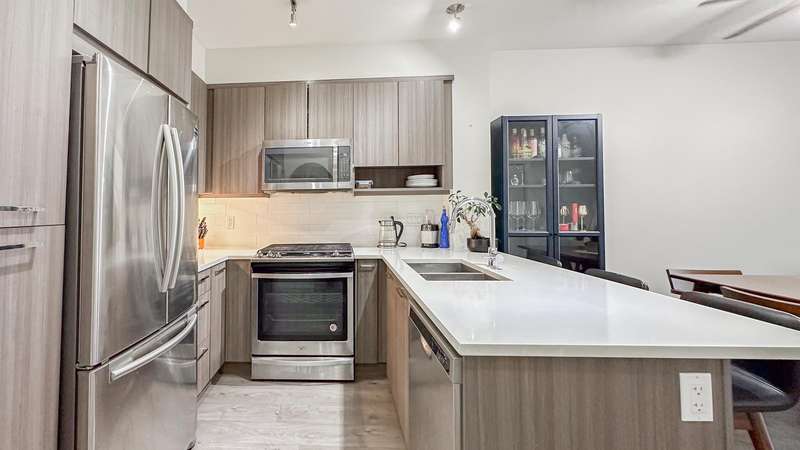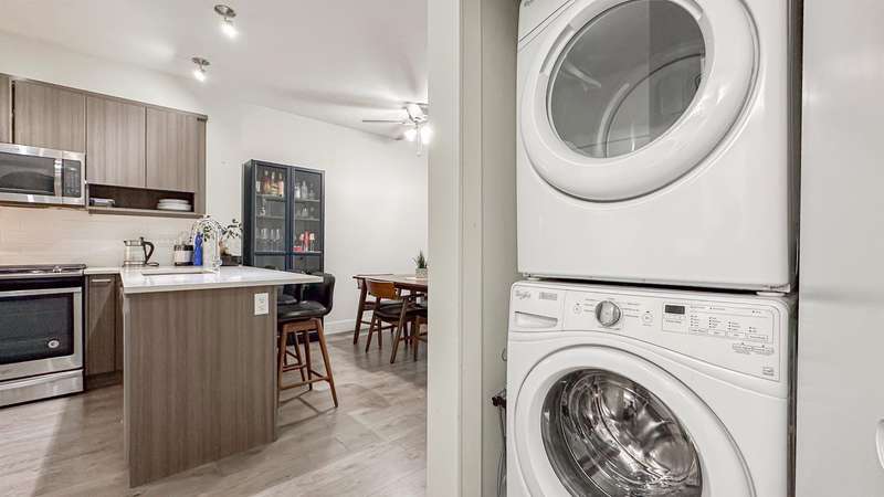 Welcome to Westbourne, where modern elegance meets comfort and tranquility! This bright, spacious 2-bed, 2-bath home offers high ceilings and an open-concept layout designed for relaxation and entertaining. The kitchen boasts stainless steel appliances, Quartz countertops, a gas stove, and ample storage. The expansive living areas flow seamlessly into an incredible 243 sqft covered deck, ideal for outdoor gatherings, taking in the serene views, or simply enjoying the peaceful ambiance. Thoughtful amenities include a lounge, playground, and more, this home truly has it all.Convenience is at your doorstep—close to everything you need while still offering a calm and serene retreat. This is perfect for families, downsizers, or investors alike. BOTH BEDROOM PICTURES ARE VIRTUALLY STAGED