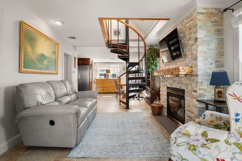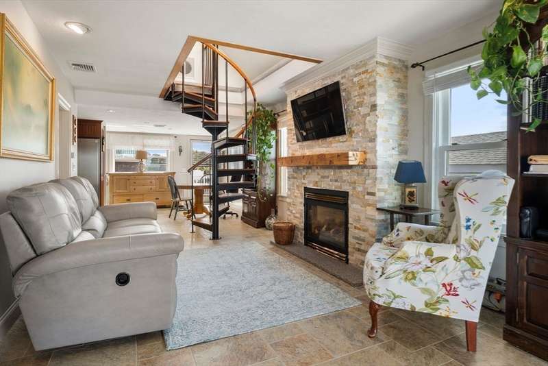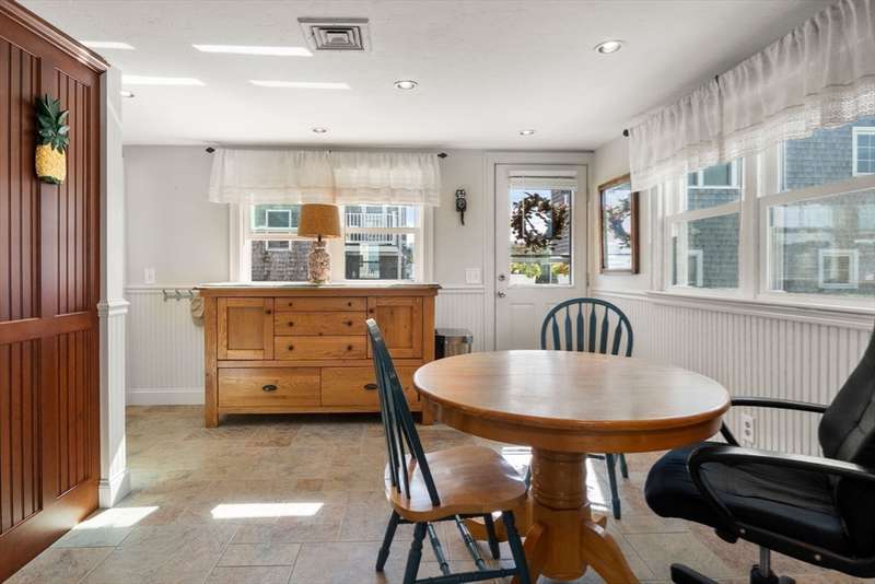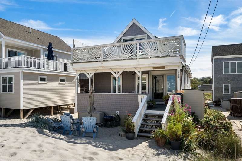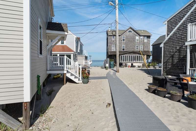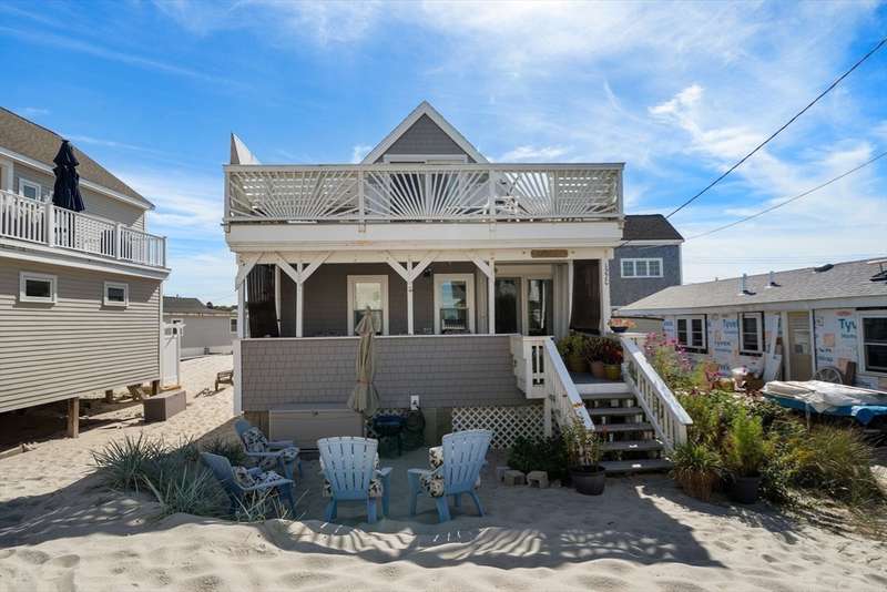 Nestled directly in the sands of sought after White Horse Beach, sits this sturdy cape/bungalow home, lovingly taken care of and updated by the same owners for decades. Relax on the porch or the balcony off the master bedroom and enjoy the ocean air and views. For more outside entertaining there is also a brand-new large PVC deck. The main first floor has an updated kitchen with cherry cabinets, Silestone countertops, gas range, and dishwasher. Ceramic tile floors throughout first floor living room, dining room, bedroom, and bathroom. The living rm has a gas fireplace, that works even if the power is out. Second level has the master bedroom, with skylights, and balcony, accessed by a spiral staircase. Rinnai on-demand hot water. Central air. Flood Insurance is $1,790. Sellers rent 1 parking spot for $500/year in nearby lot. There is also street parking with a town sticker and guest passes. House rests on concrete pilings with 2 ft x 1 ft thick concrete footings. Home being sold As-Is.