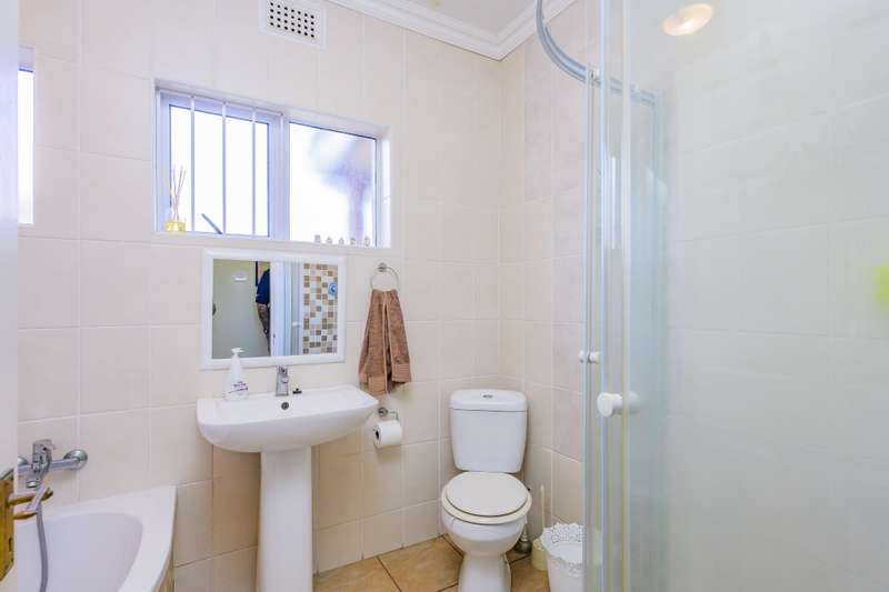This stunning 4-bedroom house exudes elegance and sophistication, offering a perfect blend of comfort and style. The open-plan lounge and dining space flows seamlessly into a large, modern kitchen, creating an ideal space for entertaining. A beautiful balcony with breathtaking views adds a touch of luxury, perfect for relaxing and taking in the surroundings. Each of the four bedrooms is a serene retreat, with two of the bathrooms conveniently located as en-suites. The fourth bedroom, situated downstairs with its own en-suite, makes an ideal guest suite, providing privacy and comfort for visitors. The property's outdoor spaces are equally impressive, featuring a sparkling pool and lush garden, perfect for warm weather relaxation or alfresco dining. Ample parking is provided with two undercover parking bays and one secure lock-up garage. Additional outside storage space adds practicality, making this home both beautiful and functional. This property is a rare find for those seeking a stylish, well-maintained home with plenty of space for living and entertaining.