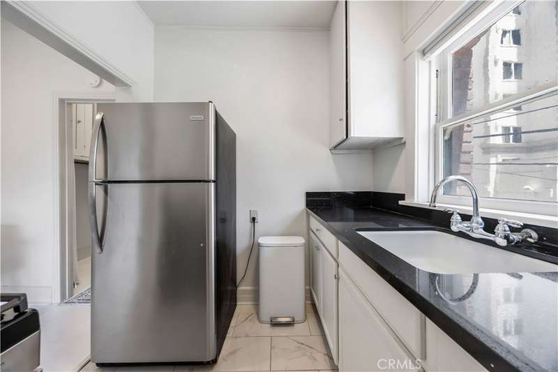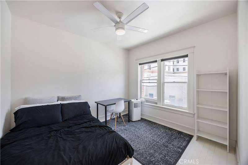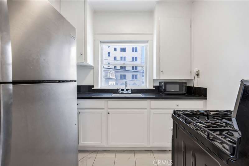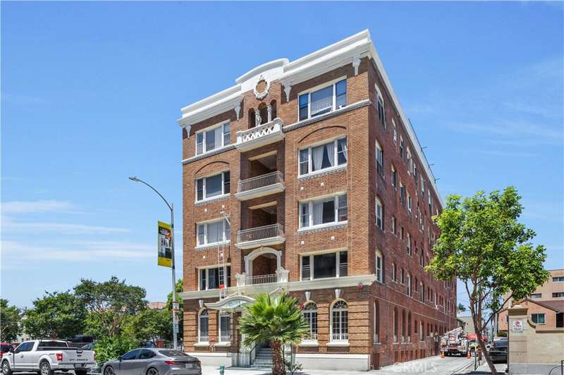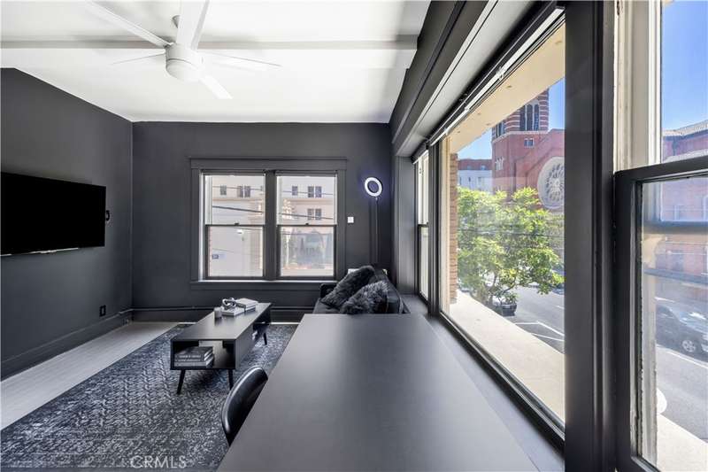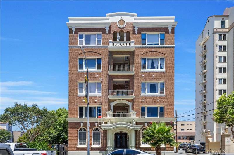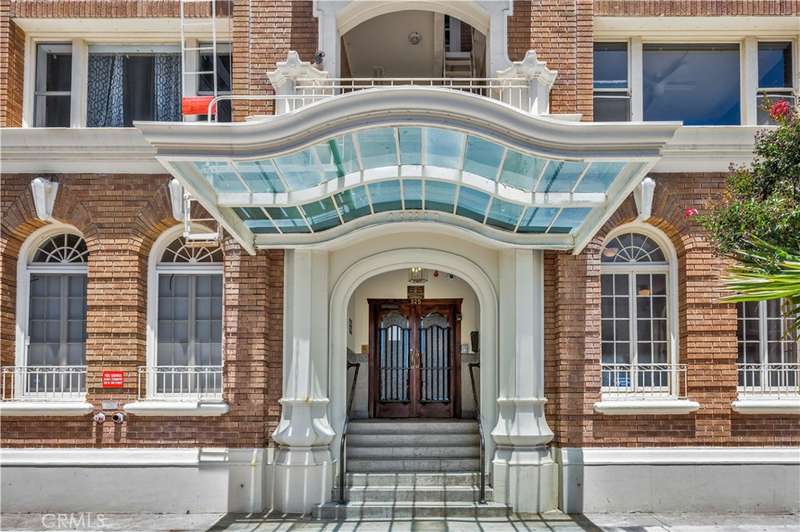 All set up and ready to be a short term rental! Will be a perfect AirBnB! HOA board allows it. City can give up to 3 more permits in this building. Long Beach is hosting 11 events in the 2028 Olympics. Values in the area will continue to rise. Charming historic Beaux-Arts design, iconic Californian was built by Joseph Roberts in 1923. With a stunning top-floor solarium and grand lobby, it has all the feels of The Great Gatsby and all the conveniences of modern living. The HOA has taken great care to modernize amenities while preserving the history, including recently updated electrical grid, refurbished elevator, FOB-operated security doors and smartphone technology washers and dryers in the laundry room. You will enjoy the best of Downtown Long Beach, with all its vibrant nightlife and fast-paced walkability. Just steps to the theatre, the aquarium, the metro, The Pike, Pine Ave and the beach. There are 2 entrances to this unit, so you could easily have a roommate you never see! The first door leads to a cozy living room with professionally painted designer black walls and white floors, extra-high ceilings and wall-to-wall windows letting in tons of daylight. This corner unit allows a 360 view overlooking the majestic First Congregational Church with its striking Italian Romanesque Revival architecture. Both AC units are included. Double doors were installed for privacy, or leave them open to the small dining room and renovated kitchen, complete with stainless steel appliances, including a BRAND NEW STOVE! Enjoy the sunlight with a window over the sink, granite countertops and original wood cabinetry. Down the hall, you'll find the beautiful bathroom with classic original soapstone penny tiles and exposed brick wall above the updated shower and freshly painted walls and ceiling. Finally, the hall opens to a large closet space and then the even larger bedroom, with its own windows and AC unit that stays! This corner, Southwest-facing unit provides the most natural light, and extra square footage you won't find in other units. The parking lot is right next door to the building, pay by the month. ALL FURNITURE IS INCLUDED! It's all yours, even the TV! Or it can be delivered empty if that's preferred. Well-run HOA includes gas, water and trash.