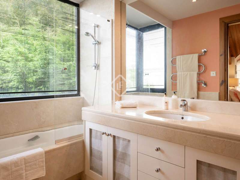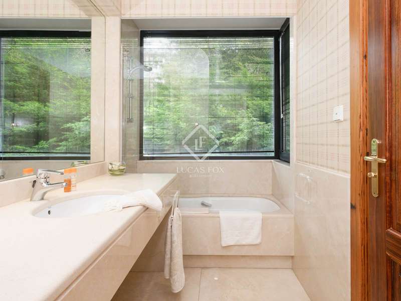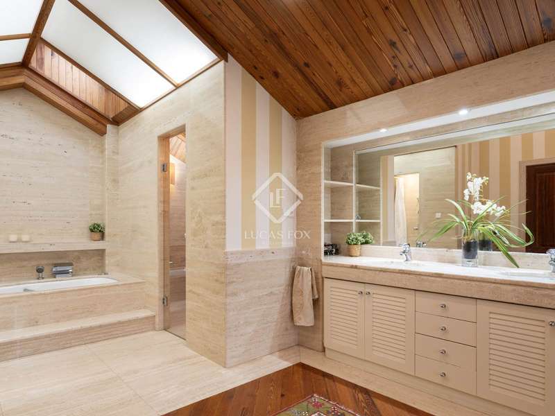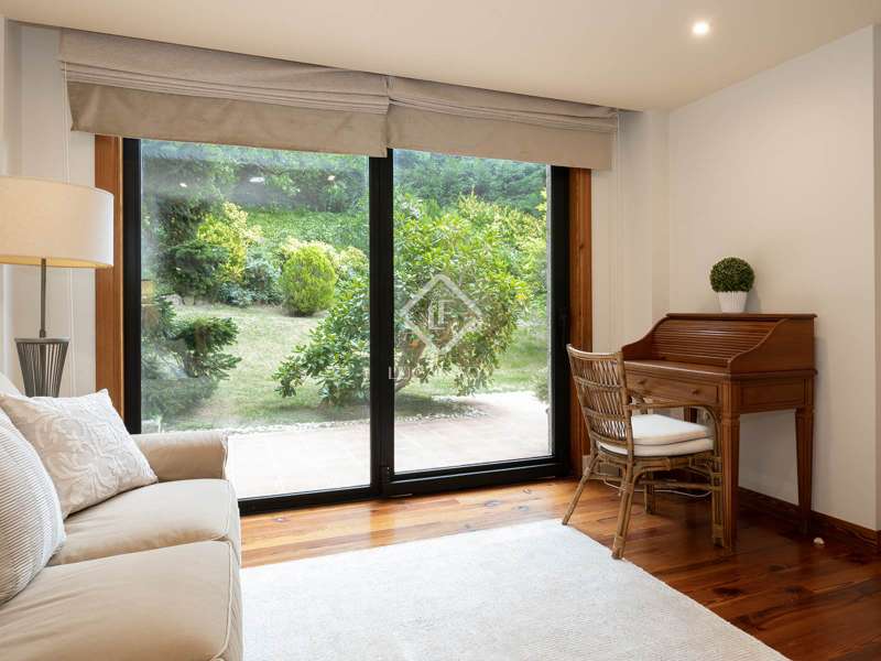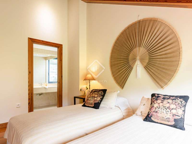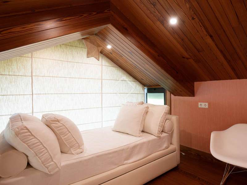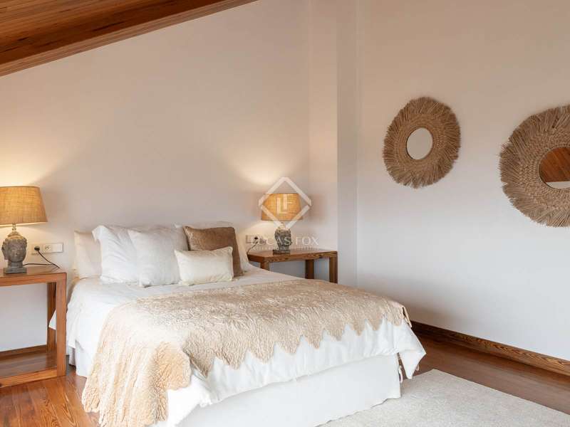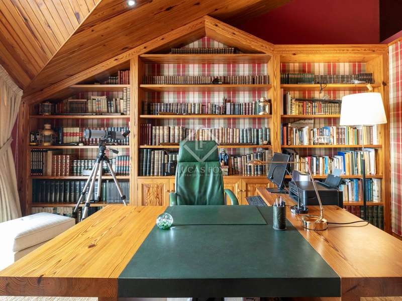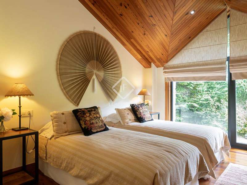 On the hilltop of Nigran, Pontevedra, this exclusive villa offers exquisite taste, high wooden ceilings and stunning panoramic views. The villa is in a flat garden that overlooks the Vigo estuary, from Baiona towards Vigo. Set in one of the most sought-after areas of the Vigo coastline, the property enjoys tranquillity and security. The property measures 2,500 m² and offers complete privacy. Upon entering, the landscaping provides a unique design finished with exquisite flowers, trees and shrubs. Towards the villa, we have beautiful outdoor spaces with terraces and porches, providing panoramic views. Once inside, we are welcomed by a double-door entry and high ceilings measuring almost 5 metres. On the right-hand side, we find a spacious study area or sitting lounge. This can easily be converted into a bedroom if necessary. A guest toilet is finished with travertine marble and good-quality taps and fittings. Down the hall, we find the living room with a built-in gas or wood-burning fireplace and large windows overlooking the garden. A split-level dining section is large enough for 12 guests if necessary. These areas provide access to the outdoor porch and garden area. Large sliding doors make the area conveniently larger. Next to the dining room is the laundry room with a bathroom, which also provides access to the outside. The kitchen is next to the laundry room. It is finished with Santos cabinetry, lovely Spanish tiles and a table. Two large sliding doors provide access to an outdoor dining area for a summer cook out next to a barbecue. Upstairs there is a generous landing featuring a curved glass bannister. Here, there are high vaulted ceilings finished with heart pine carpentry. There are two en-suite bedrooms, both of a good size. One bedroom offers a mezzanine floor, currently used as a small study area. The same bedroom offers a balcony overlooking the garden area and the sea. Next to the bedrooms is a home office/library, which can be converted into another bedroom if necessary. Right next to the office is the main en-suite bedroom and dressing room with twin wardrobes. A good-sized balcony overlooks the garden and estuary. Next to the dressing room we find the en-suite bathroom, finished with a freestanding shower and jacuzzi all finished with travertine marble. On the ground floor, there is a family room/in-house service bedroom with a bathroom and its own entrance. There is also a technical room, pantry, wine cellar, tool room and a sizeable gym/storage room. The parking area offers parking for 3–4 vehicles. There is also a sizeable storage area. The villa offers underfloor heating throughout. It also has solar panels for efficiency and backup batteries. The property is very well situated between Vigo city and Baiona. The area is surrounded by mountains, magnificent, safe beaches, marinas, water sports facilities and golf clubs. It would be ideal for a growing family looking to relocate to a larger property where there are excellent international schools and convenience services. It would also be ideal for anyone looking to purchase a second home in an area with a climate that is good throughout the summer and winter months. Please contact us for further details.