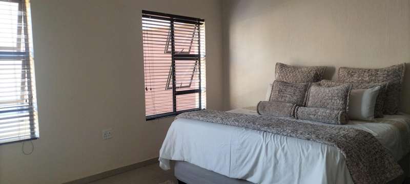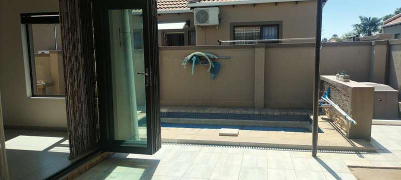 Exclusive Mandate Modern Cluster 3 Good sized bedrooms. 2 Full bathrooms (2 showers and 1 bath). Open plan lounge with wood heater Open plan kitchen with integrated fridge and microwave. Huge patio. Private splash pool. Easy living in a secure estate. Double garages. Solar geyser. Low levies. Upmarket complex. Close to Brentwood shopping mall. Easy access to all major highways. Please phone to arrange a private viewing.