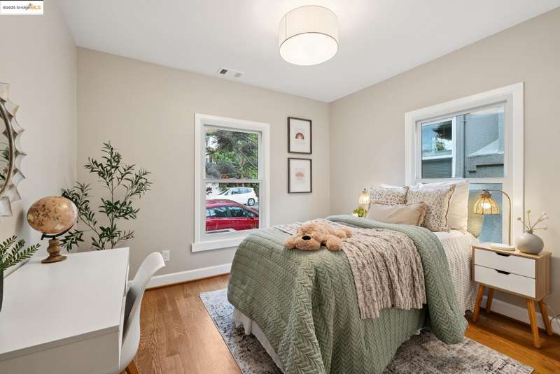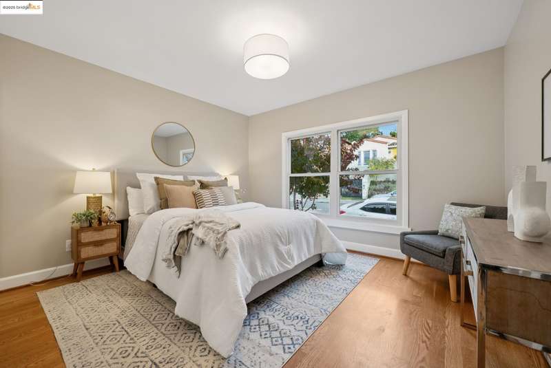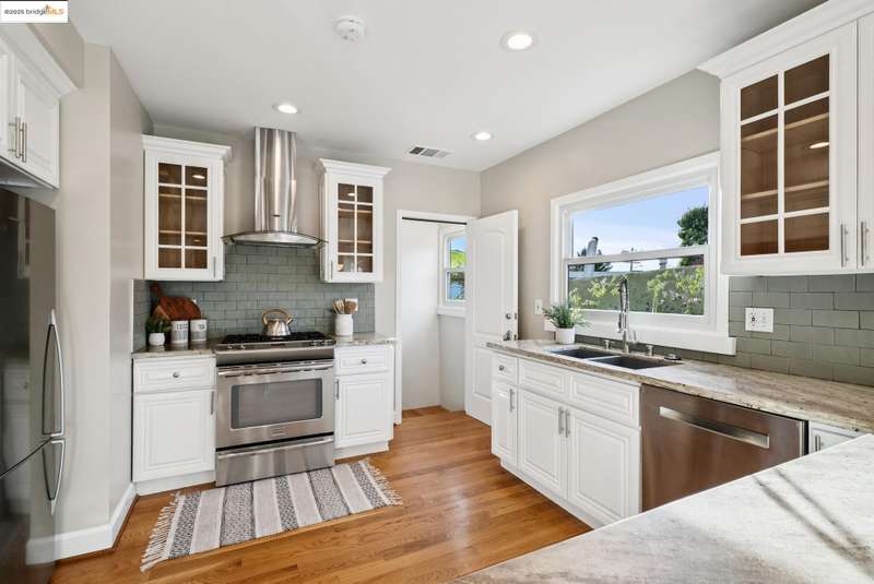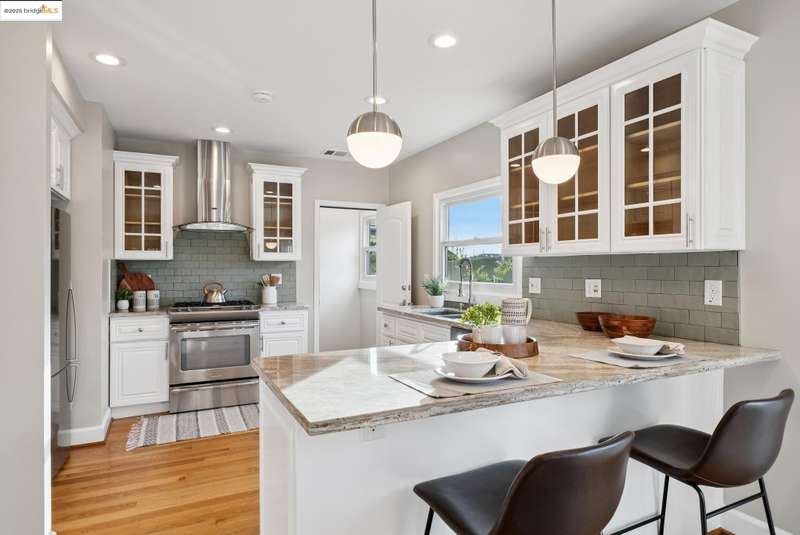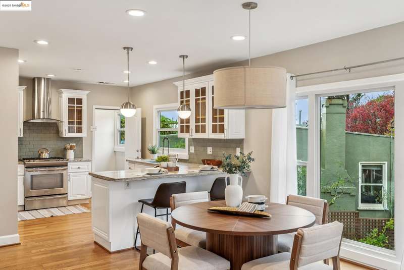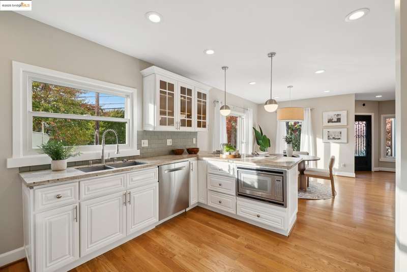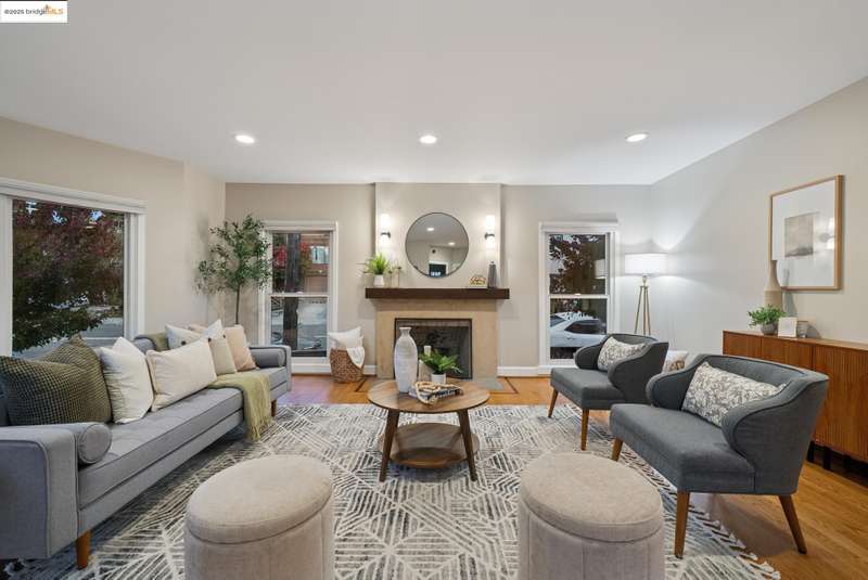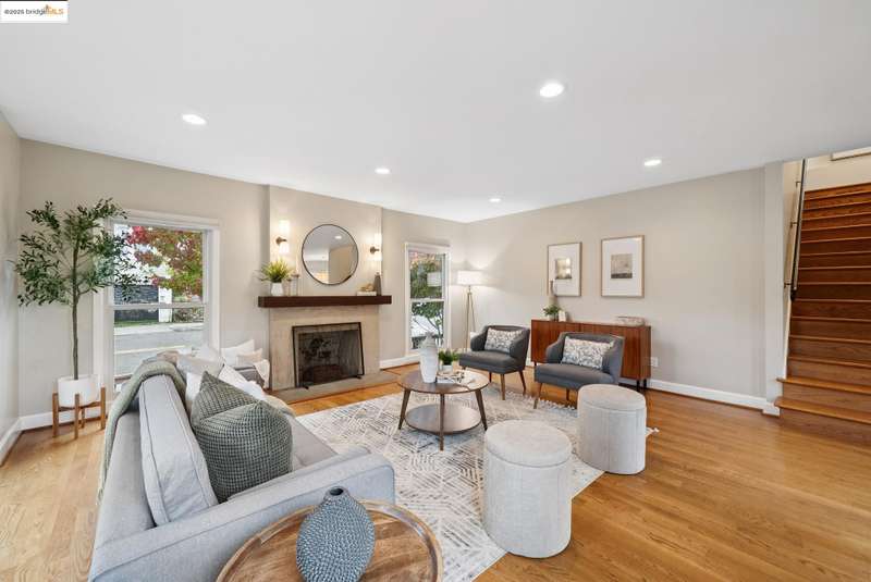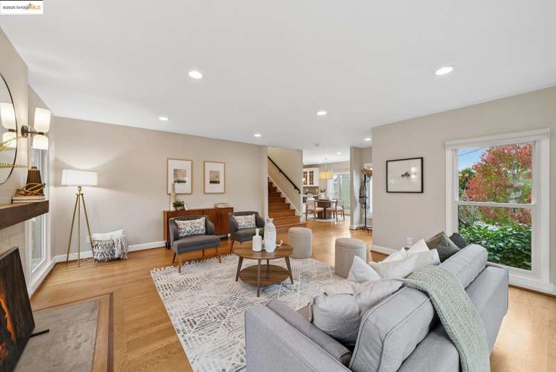 Location is everything—and this one offers the best of both worlds. Enjoy Albany’s top-rated schools and small-town charm while being just one block from Berkeley’s vibrant energy. Around the corner are Monterey Market, Gilman District shops, Whole Foods, Acme Bread, Bartavelle, Café Leila, and Solano Avenue restaurants and boutiques. Easy access to BART, Transbay bus lines, and the Ohlone Greenway make commuting effortless. Completely updated and glowing with natural light, this home features 3 spacious bedrooms, 2 completely updated bathrooms, and a flexible layout designed for modern living. The kitchen shines with granite counters, a designer tile backsplash, and a breakfast peninsula that opens to the formal dining room—perfect for entertaining or hosting. The spacious living room offers warmth and flow, complemented by beautiful wood floors throughout, a fireplace and floor to ceiling windows all around. Two bedrooms and a full bath sit on the main level, with a private upstairs suite ideal for guests, teen quarters or a home retreat. Come inside from your two-car garage for easy access-- a wonderful dedicated office and laundry are found on the lower level. Did we mention the air conditioning? A low-maintenance corner lot & unbeatable walkability the complete the package.