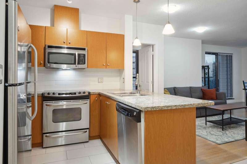 Located in Encore, this meticulously maintained 2 bed and 2 bath, corner unit offers a stunning unobstructed north-eastern view of the Fraser River and Mount Baker. Interior features include stainless steel appliances, granite countertops, and laminate flooring. The primary bedroom boasts a large walk-in closet. The suite's convenient location provides easy access to Lougheed Mall shopping, groceries, parks, public transit, and entertainment. Additional amenities include a garden courtyard, gym, and theatre. This home includes one parking stall, one storage locker, and in-suite laundry.