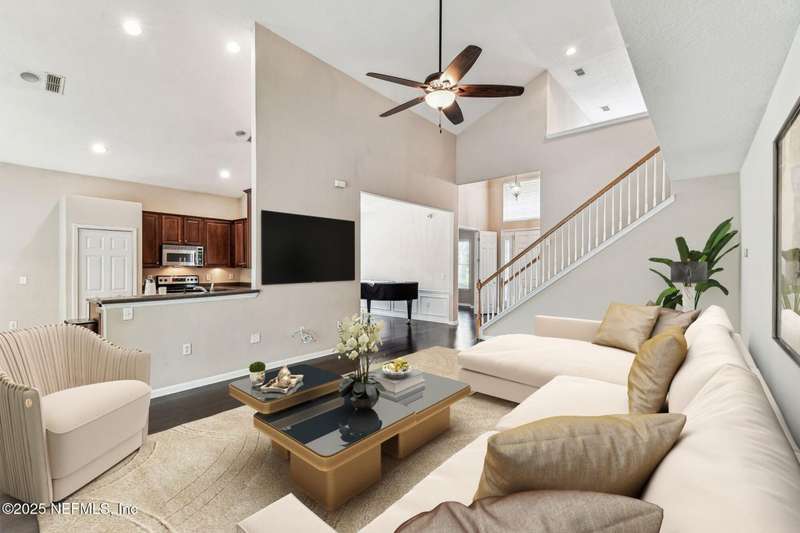 Welcome to your spacious 3BR, 2.5BA home with over 2,400 sq ft, nestled on a quiet street with preserve views both front and back. Enjoy peaceful mornings or entertaining in the indoor sunroom &/or screened lanai. Step inside to soaring 20'+ ceilings, an open floorplan, and a front flex room perfect for an office or reading nook. The kitchen features Corian countertops, quality cabinetry, and a center island. Main living is conveniently downstairs, including the owner's suite-guest rooms and loft are tucked upstairs for privacy. NEW roof (2023) & HVAC (2022).Termite Bond & Sprinkler System. Embrace an active lifestyle that keeps you young in the 55+ gated community of Sweetwater by Del Webb, with amenities including pool, spa, gym, classes, tennis & pickleball. Close to Mayo, beaches, shopping & dining.