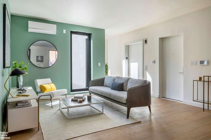 Private elevator access delivers you to your new 3 bedroom/2 bath home. Oversized windows throughout provide tremendous light and beautiful views of Brooklyn and beyond. The open living, separate dining area and kitchen is perfect for both entertaining and everyday living. The home features 9-inch white plank oak floors throughout, multi zone split system cooling and heating is quiet and very energy efficient. The custom kitchen features white oak cabinetry, integrated Bosch appliances, full size pantry, honed Basaltina countertops with island. The primary bedroom features a walk-in closet with modern bathroom offering a spa like-retreat, featuring anthracite porcelain mosaic tile, oak vanities, Robern curated mirrors and Grohe chrome fixtures. The second bathroom is outfitted with a large deep soaking tub. Eight St. Marks Place is a luxury 14-unit boutique building, located in the nexus of four great neighborhoods - Boerum Hill, Fort Greene, Park Slope and The Gowanus Art District. Transportation is easily accessible with 2,3,4,5, B,Q,D,N,R and LIRR trains minutes away. private storage and bike storage.