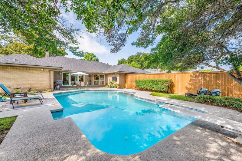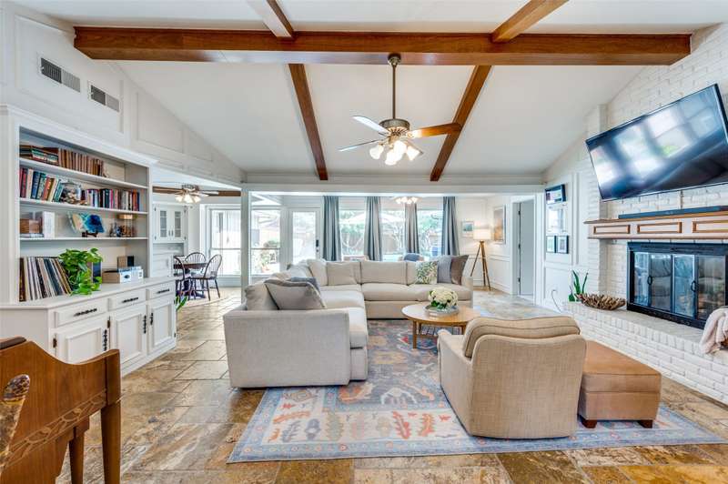 Multiple offer deadline Sunday Sept 14th, 2025@8pm. Location! Location! This expansive single-story home features a well-designed split bedroom layout, offering both comfort and privacy. The open concept island kitchen includes double ovens, additional bar-top seating and generous counter space, ideal for everyday living and entertaining. A spacious family room with built-ins, beamed ceilings, a wet bar, and a striking brick fireplace showcases a wall of windows overlooking the backyard OASIS and sparkling pool. With 4 bedrooms and 3 full baths, this well-maintained home seamlessly blends style, functionality, and indoor-outdoor living. Some updates included Fence (2020), Roof (2020), Ovens (2023), Condenser and Furnace (2024), Dishwasher and Garbage Disposal (2025).