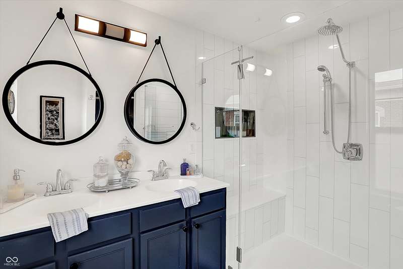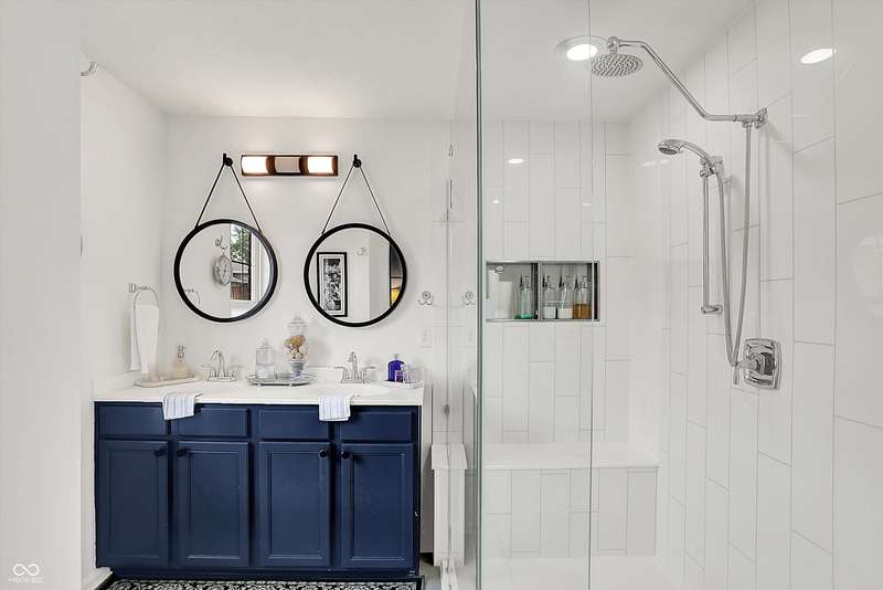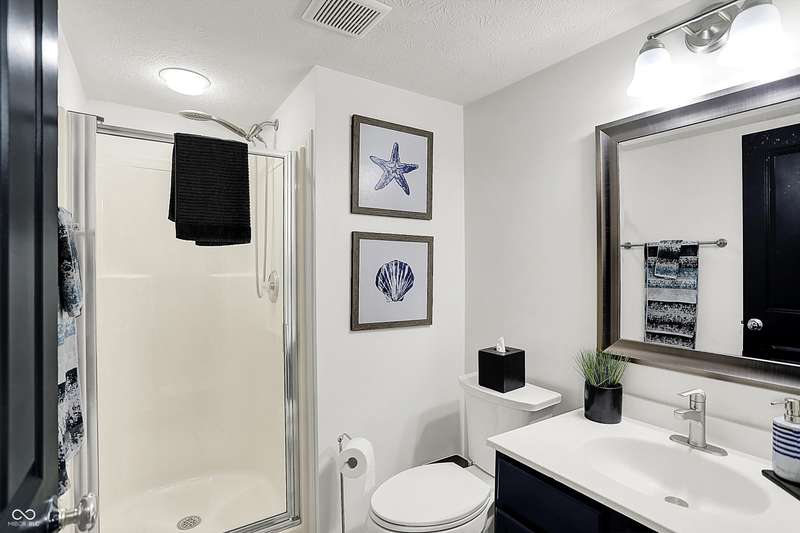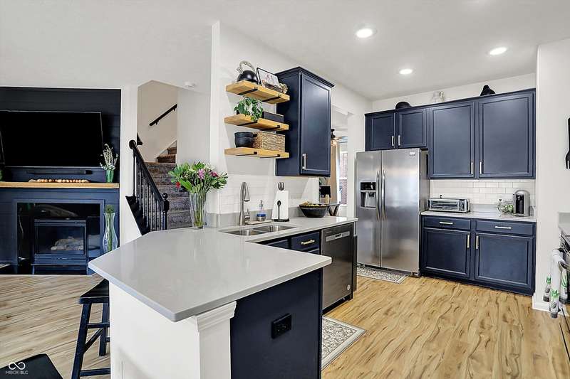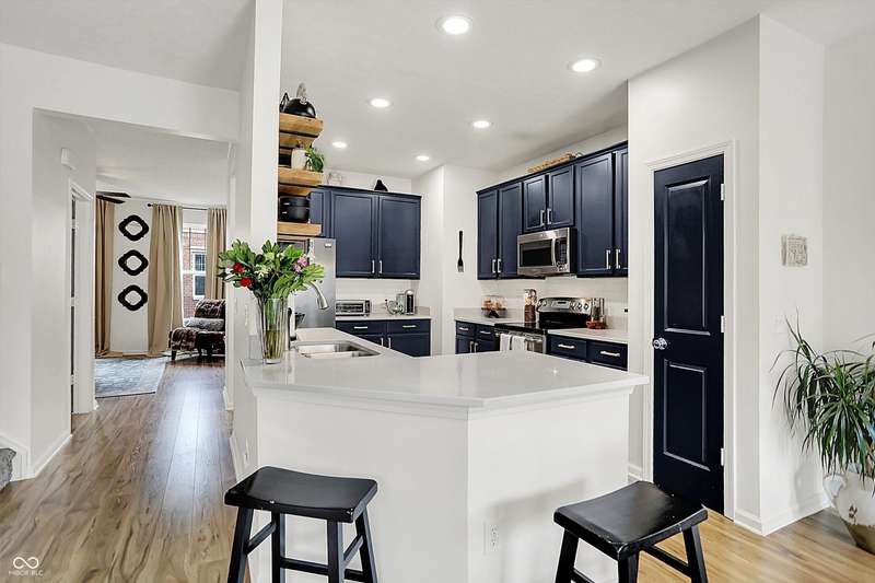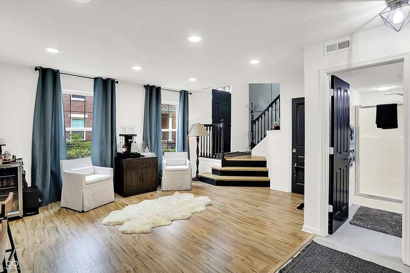New Roof! Welcome to this beautifully upgraded townhome nestled in a highly sought-after community on Indy's Northside. An unbeatable location near 96th & Meridian provides easy access to 465, Carmel and a straight drive to downtown Indy via US31. This home offers three spacious levels of living, 3-bedrooms, 3.5-baths combining modern upgrades with functional design, perfect for comfortable living and entertaining. Step inside to find Luxury Vinyl Plank flooring throughout the first and second levels, including stylish hardwood stairs that enhance the clean, contemporary feel. The open-concept main floor is filled with natural light and updated LED lighting, while an accent wall adds a designer touch. A spacious living and dining area flows seamlessly into the updated kitchen, featuring freshly painted cabinets, added open shelving, and sleek finishes. A convenient half bath and elegant wainscoting complete the main living space. Upstairs, retreat to the generous primary suite with a fully upgraded walk-in shower and ample closet space. Two additional bedrooms, newer carpet, and full baths ensure comfort for family or guests. The lower level boasts a custom bar area-3 TVs ideal for entertaining-as well as another full bath, flexible living space, and access to the attached garage. Additional upgrades include a New Roof, whole-home water filtration system, smart lighting, new dishwasher and thoughtful storage solutions throughout. This home offers style, function, and a fantastic location close to shopping, dining, and easy interstate access. Don't miss your chance to own this move-in ready gem!