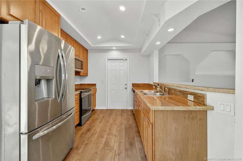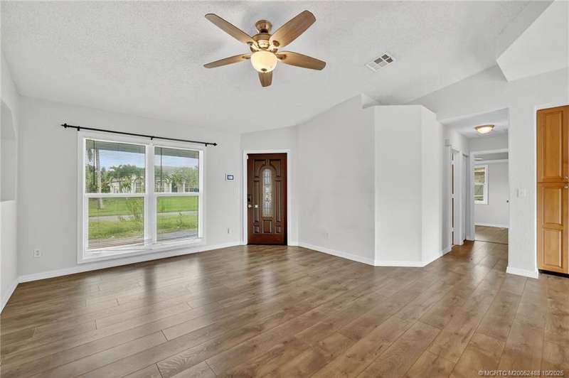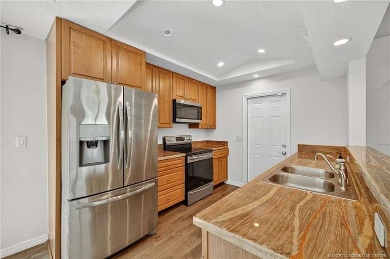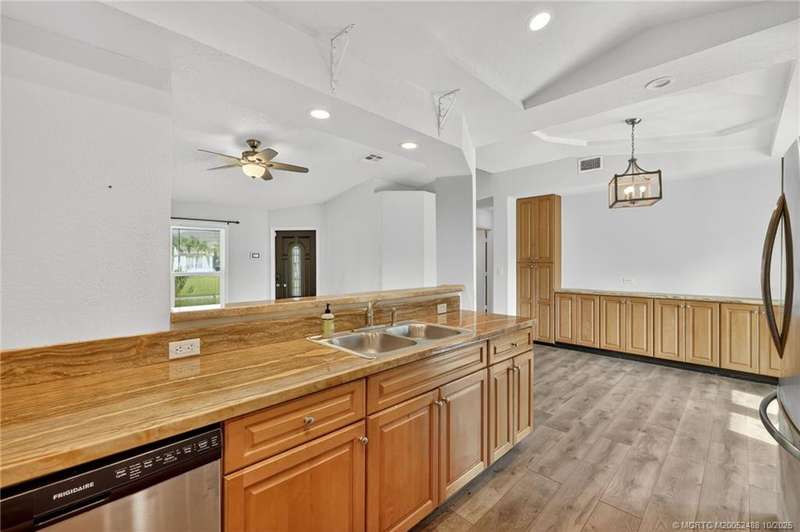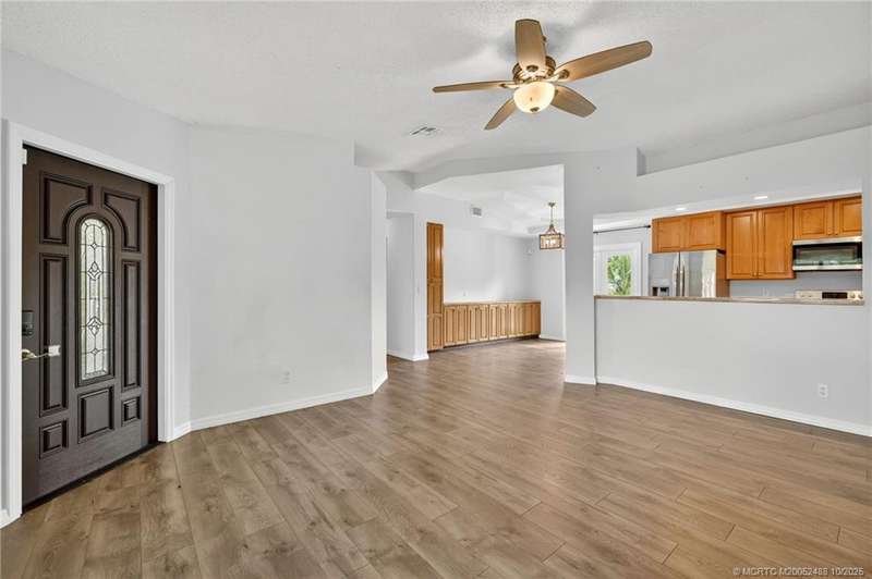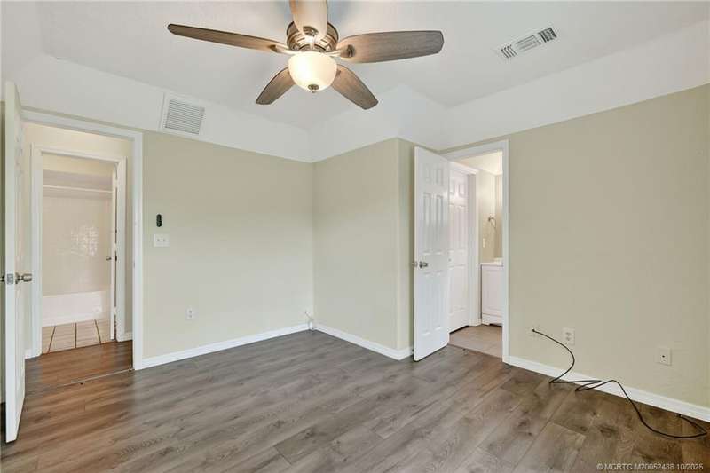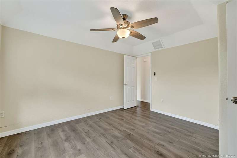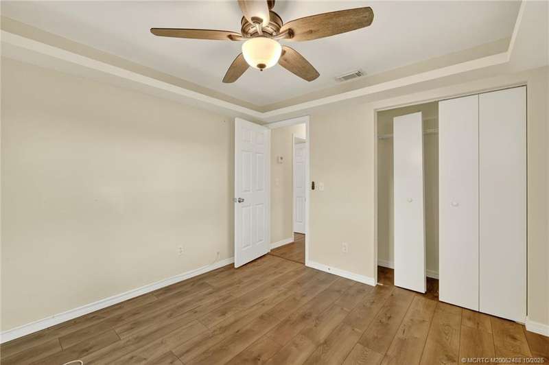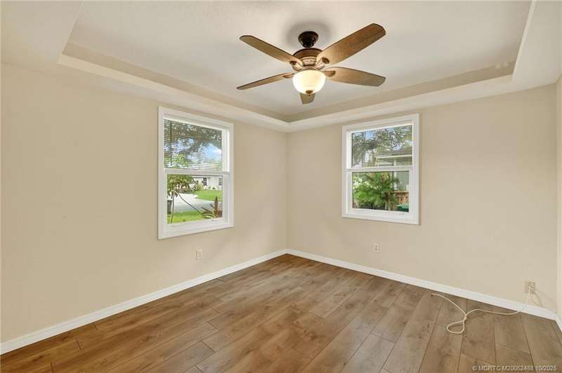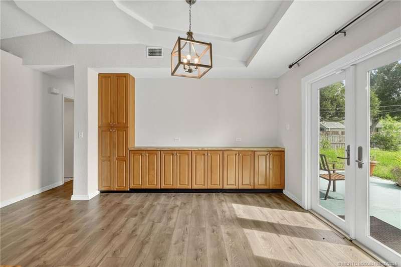 Beautiful 2 bedroom 2 bath home perfectly located in a great neighborhood with no HOA's. Home features luxury vinyl flooring and vaulted ceilings that create a bright, airy atmosphere, updated bathrooms, impact windows and doors, stainless steel appliances, and Corian countertops. Enjoy French doors leading to a large patio and completely fenced landscaped yard for entertaining. Located just minutes from shopping, restaurants, and schools, with easy access to I-95 for commuters. Home also features complete solar panels resulting in extremely low electric bills for tenant.