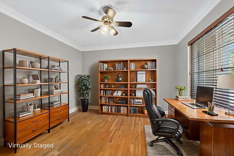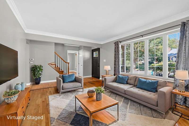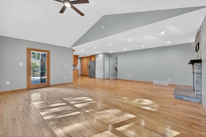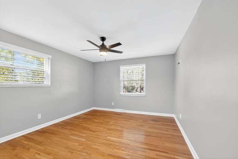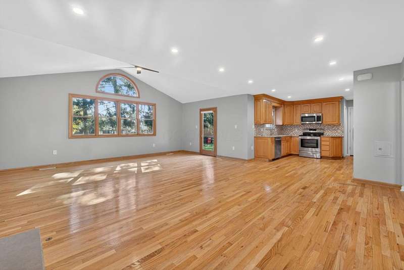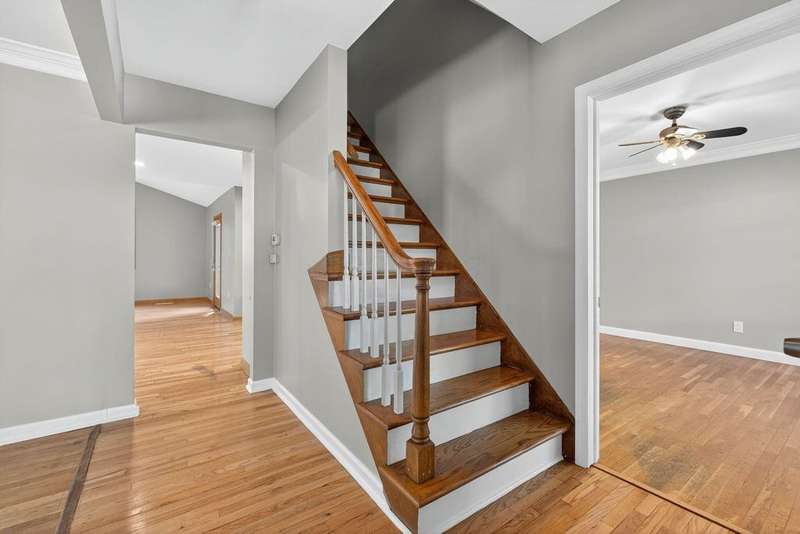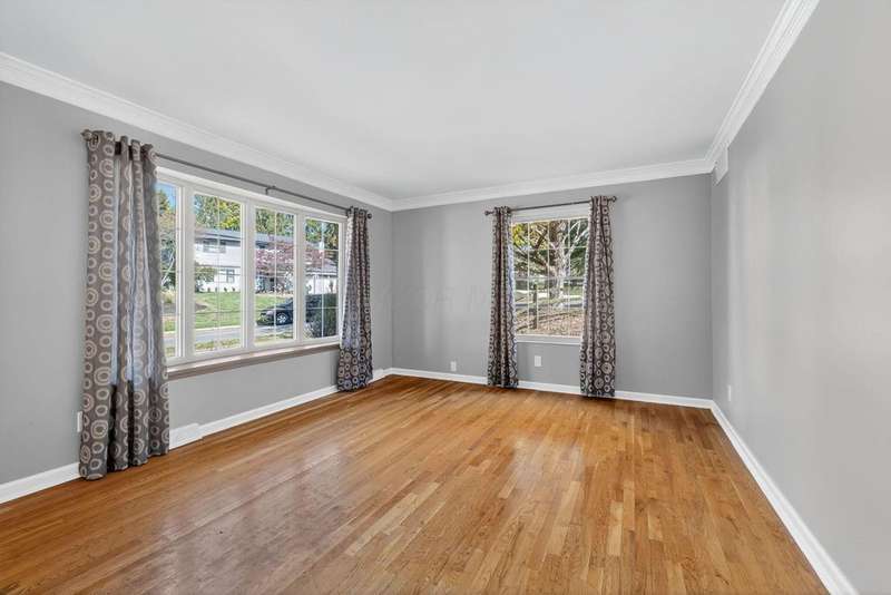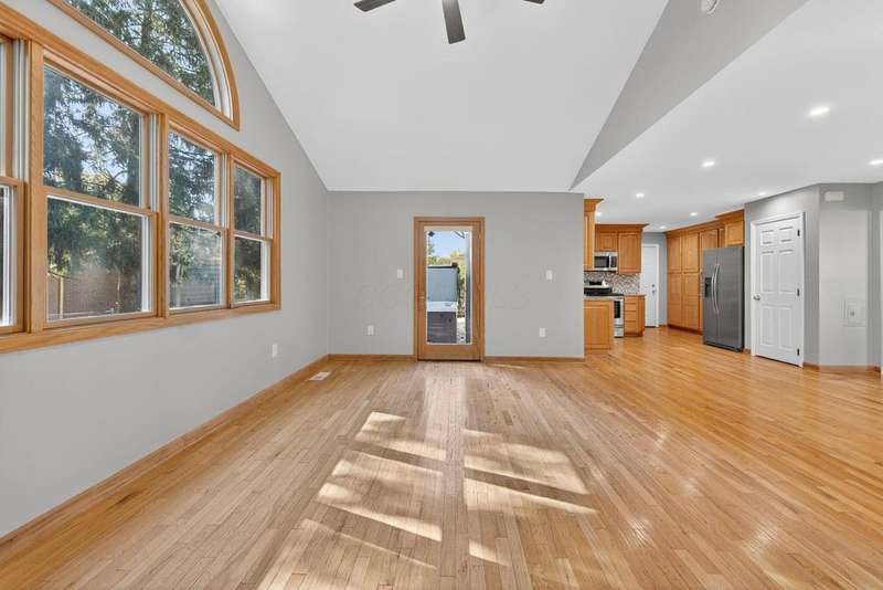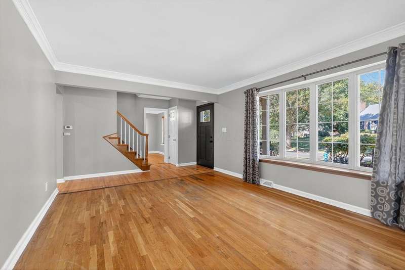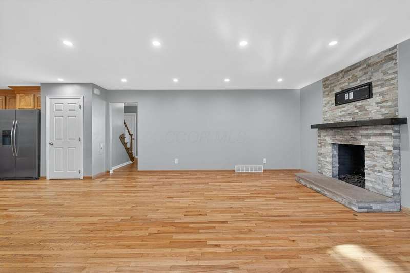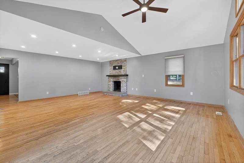 Welcome to 445 Thackeray Avenue, Worthington, OH 43085. Located in the heart of Worthington, this inviting two-story home offers comfort, style, and thoughtful updates throughout. Step onto the charming front porch and inside to find hardwood floors, fresh paint, and a spacious open-concept layout connecting the kitchen, dining, and living areas, ideal for both everyday living and entertaining. A home office and half bath complete the first level for added convenience. Upstairs, you'll find four spacious bedrooms and two full baths, including a primary suite with a private bathroom. Recent updates enhance the home's appeal, including new ceiling fans in the bedrooms, a new roof (2023), a custom front door (2023), and a gas fireplace with custom stone, limestone hearth, and reclaimed barnwood mantle (2019). This home is also one of the few in the neighborhood featuring a bump-out floor plan, creating an even more open and inviting main level. The partially finished basement adds flexible space for a recreation room, fitness area, or storage. Outdoors, enjoy the stunning corner lot, beautifully landscaped and fully fenced for added privacy. A relaxing deck and hot tub make it the perfect retreat for gatherings or peaceful evenings at home. All this is just minutes from schools, parks, and the charming shops and dining of historic downtown Worthington.