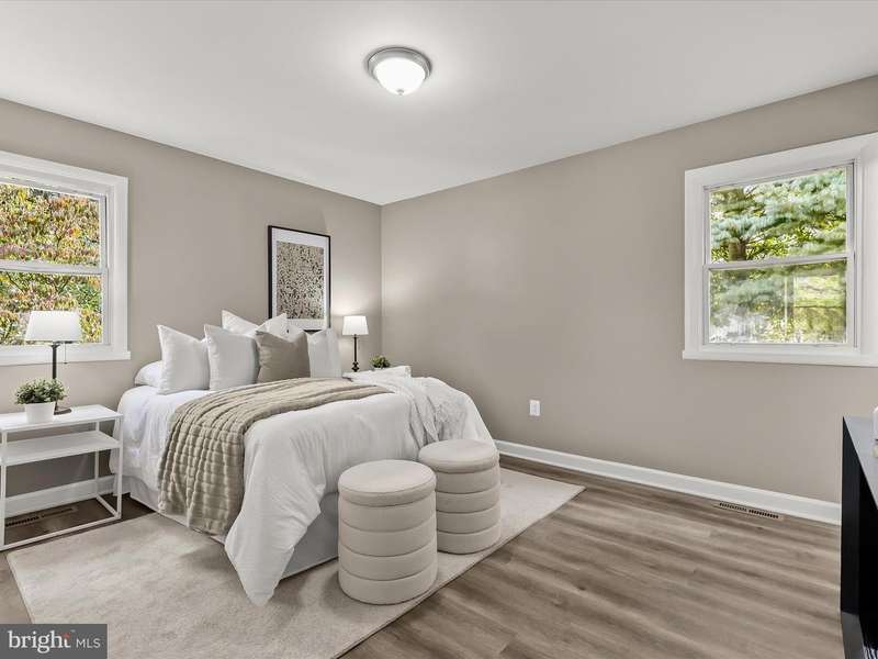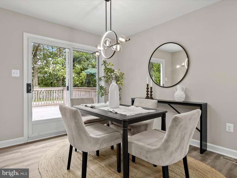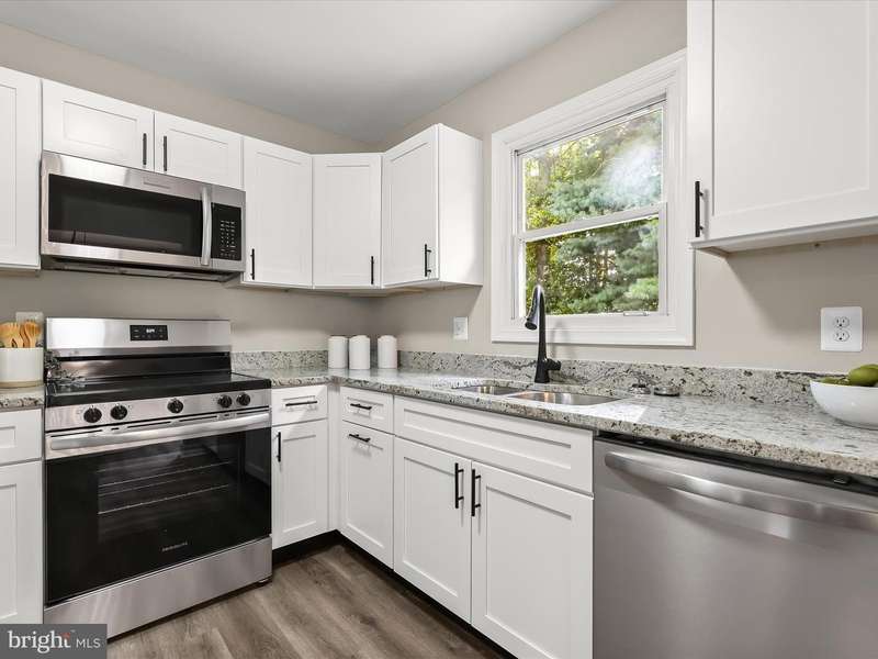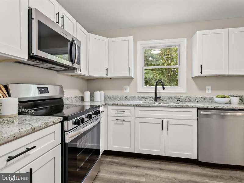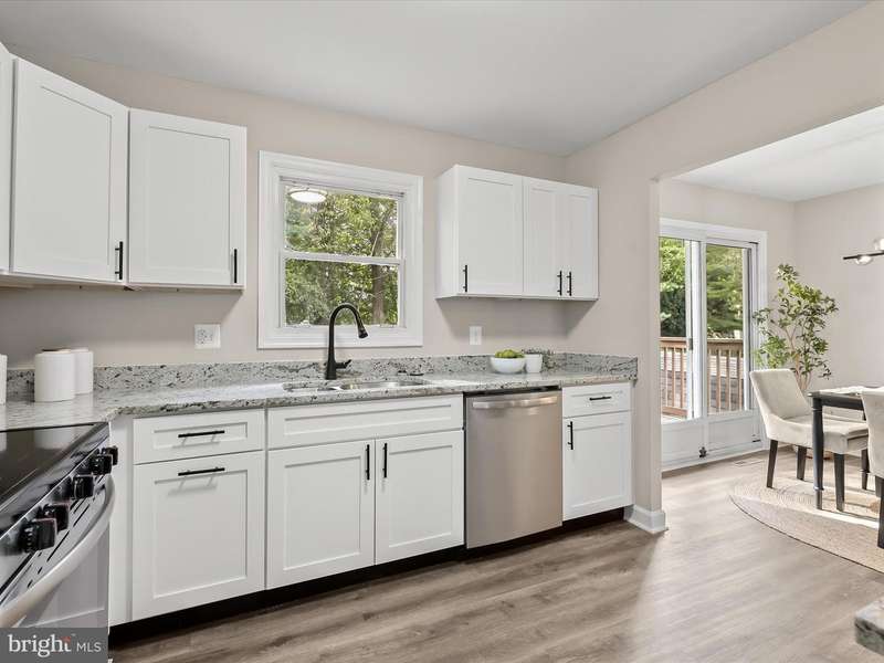 Welcome to this beautifully renovated 5-bedroom, 3-bath home with a new roof nestled on a peaceful cul-de-sac in the sought-after Bright Oaks neighborhood, surrounded by mature trees. The extended driveway leads you to an inviting interior where new wood-inspired luxury vinyl plank flooring, a fresh neutral color palette, and a new modern lighting package create a warm and welcoming atmosphere. The sun-filled living room seamlessly connects to the dining area, which opens to a spacious deck overlooking the fenced backyard and stately trees; perfect for relaxing or entertaining. The fully renovated kitchen is ready for your culinary creativity, featuring soft-close cabinetry, granite countertops, stainless steel appliances, and a double sink for effortless meal prep. Retreat to the serene primary suite with its beautifully renovated en suite bath, showcasing ceramic tile flooring and a custom walk-in shower. Two additional bedrooms and a fully updated hall bath complete the main level. The lower level expands your living space with two more bedrooms, a versatile bonus room all with new plush carpeting, and a third fully renovated full bath. Outside, the shed provides ideal storage for tools, bikes, and seasonal decor. With the many thoughtful updates plus a new roof, 200-amp electrical panel, and a complete electrical upgrade, this home feels fresh and move-in ready. Enjoy the vibrant Bel Air lifestyle with convenient access to shops, dining, and the charm of the historic downtown district.