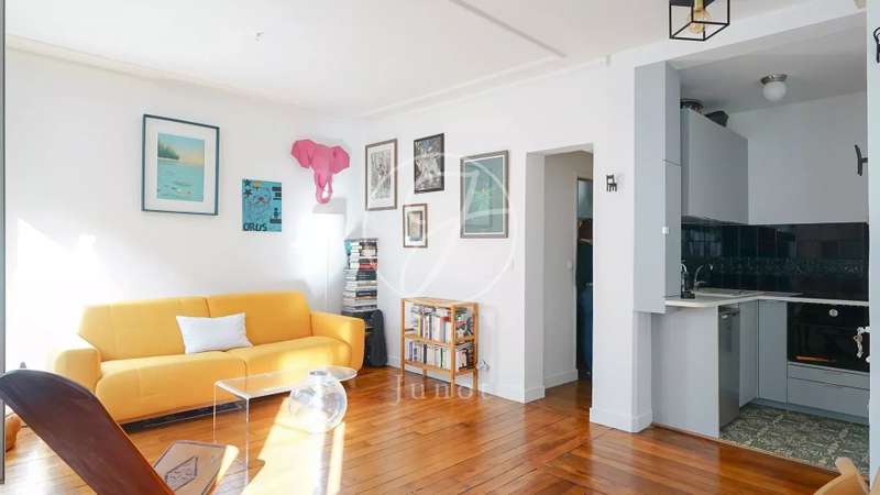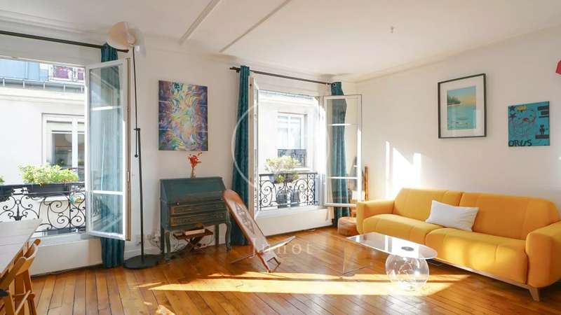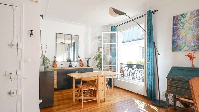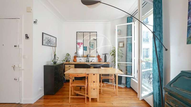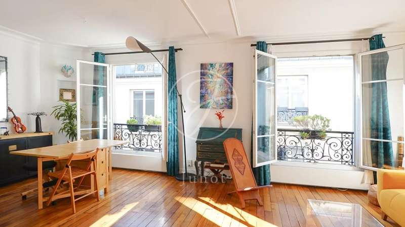 At the foot of Montmartre Hill, just steps from Rue des Martyrs, this 42.80sqm (460 sq ft) Carrez Law apartment, offering absolute peace and quiet, boasts a perfect layout and beautiful light thanks to its west exposure. Located on the fifth floor via stairs of a very well-maintained building with a caretaker. Parisian charm: original parquet floors, large windows, and high ceilings. This property comprises an entrance hall, a double living room, an open-plan fitted kitchen, a bedroom with storage, and a shower room with toilet. A cellar completes this rare property.
