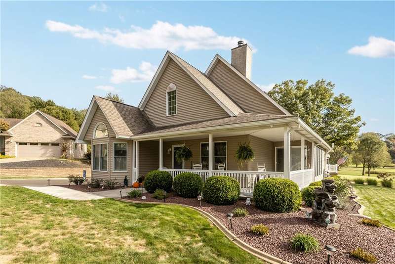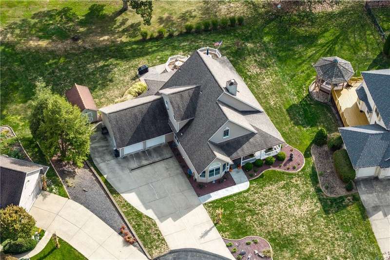 Beautifully maintained 3 BR, 2.5-bath Provincial-style home, located on a quiet cul-de-sac within the prestigious Shadow Lakes Golf Course community. Thoughtfully designed for comfort and convenience, this home offers main-floor living with 2 BRs, 1.5 baths, & laundry all on the first floor?an ideal setup for those looking to age in place. Step inside to discover gleaming hardwood floors, fresh paint, & updated baths throughout. A double-sided brick gas fireplace warmly connects the living & dining rooms.Any home chef will love the oak kitchen with solid surface countertops, tiled backsplash, & plenty of cabinetry. French doors from EIK to huge sunroom leading to expansive Trex deck overlooking scenic golf course. Upstairs, you'll find a spacious primary suite with a huge walk-in closet, a luxurious en-suite bath complete with clawfoot soaking tub & tiled shower, & an adjacent loft space?ideal for a home office. Also includes a 2-car attached garage, an Amish-built garden shed.