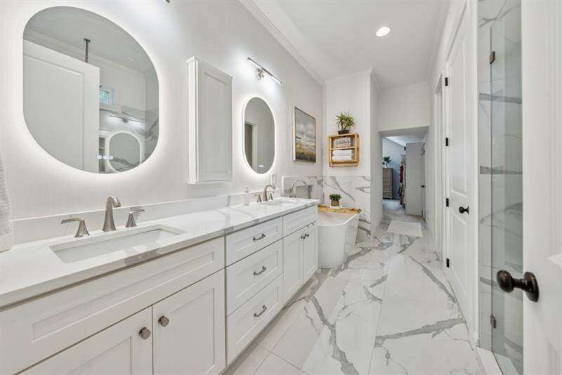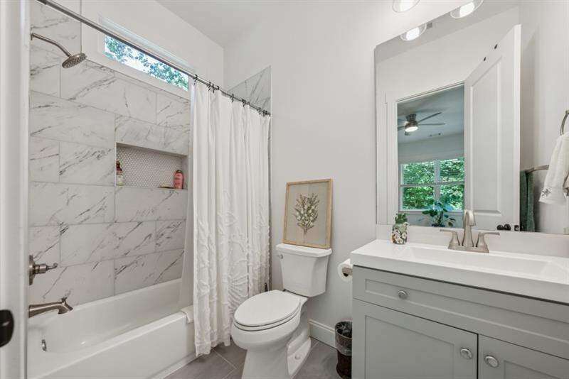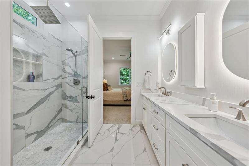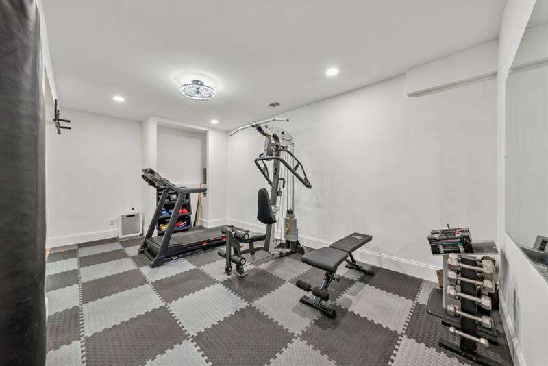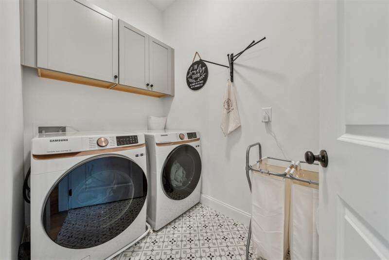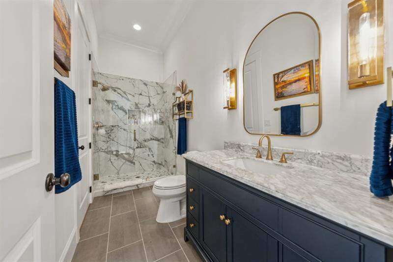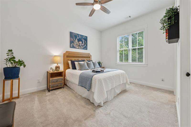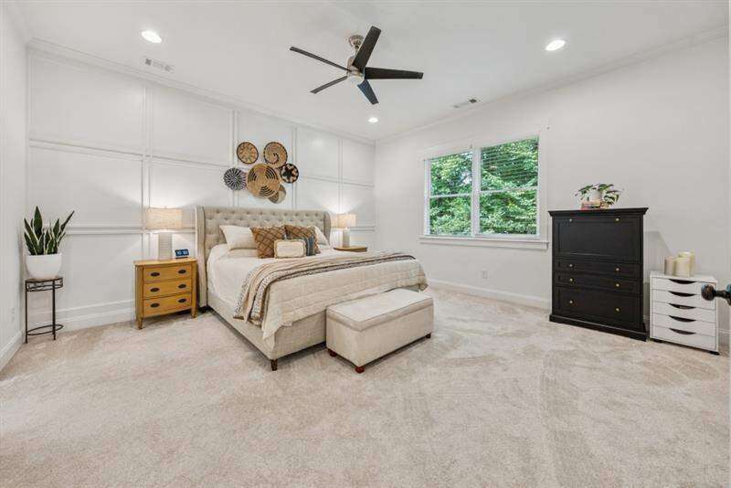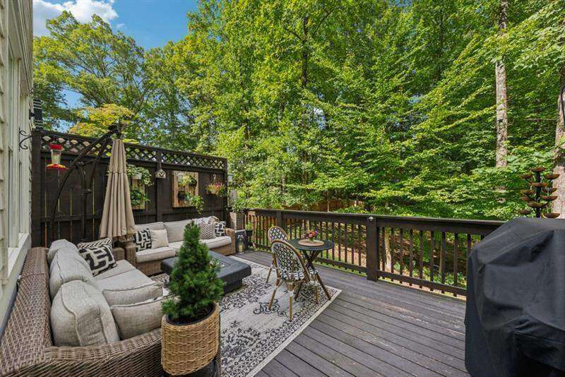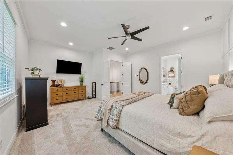 Experience unparalleled elegance in this gorgeous, modern, like new 6-bedroom, 5-bathroom plus office home. Perfectly situated less than 5 minutes from the vibrant dining and shopping of downtown Alpharetta, Roswell and Milton/Crabapple, this home offers the ideal blend of tranquility and convenience in the coveted Milton High School district. Step inside and be captivated. This bright and inviting 3-story home features soaring 11-foot ceilings and stunning 9-inch white oak floors that flow throughout the expansive open floor plan. A dramatic wall of windows floods the space with natural light and provides serene views of your private, wooded oasis. The cozy living area, accented by an inviting fireplace, creates a chic space perfect for lively gatherings or quiet evenings at home. Custom craftsmanship makes this home extra special, with beautiful coffered ceilings, planked walls, elegant wainscoting, and refined decorative moldings throughout. The heart of the home is a true chef's kitchen, shining with a large island, sleek quartz counters, spacious walk-in pantry, stylish wine bar, and stainless-steel appliances. On the upper floor, the stunning owner's suite is a true retreat, boasting a huge walk-in closet with custom built-ins and an island, plus a gorgeous ensuite featuring double vanities, a soaking tub, and a large shower for ultimate relaxation. Three additional bedrooms upstairs each with their own ensuite, as well as a light-filled separate office space with French doors. A fully finished basement adds incredible versatility with a bedroom, full bathroom, cozy living area, home gym, extra storage and large workshop. With more than 5,700 sq ft of thoughtfully designed space and easy access to GA 400, this home perfectly complements your lifestyle. Schedule your showing today and discover the life within Alpharetta you've been dreaming of!
