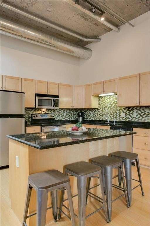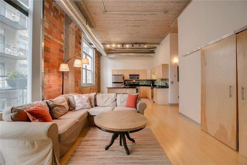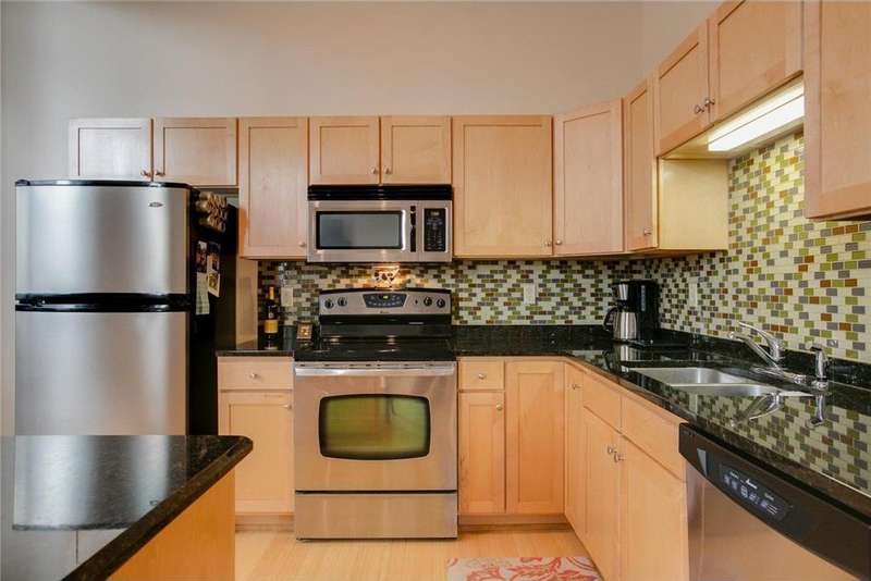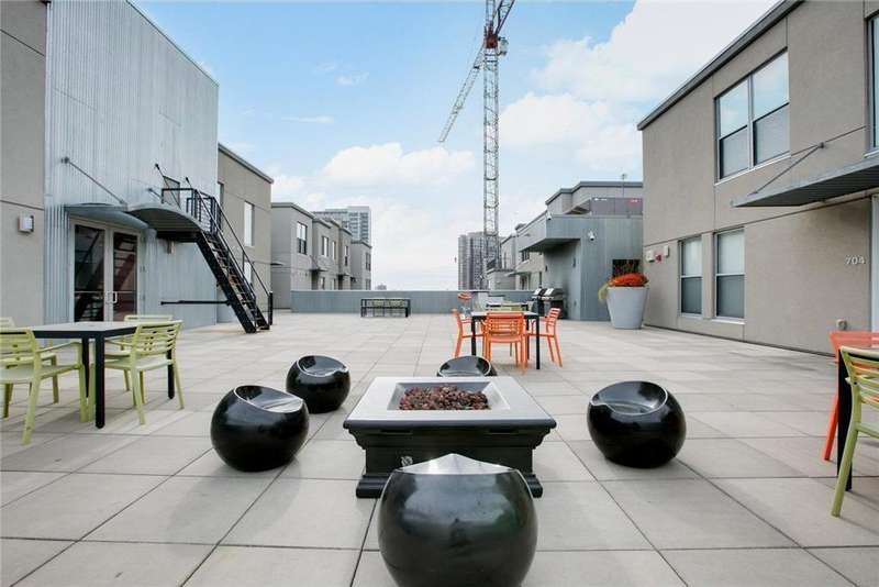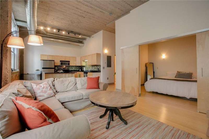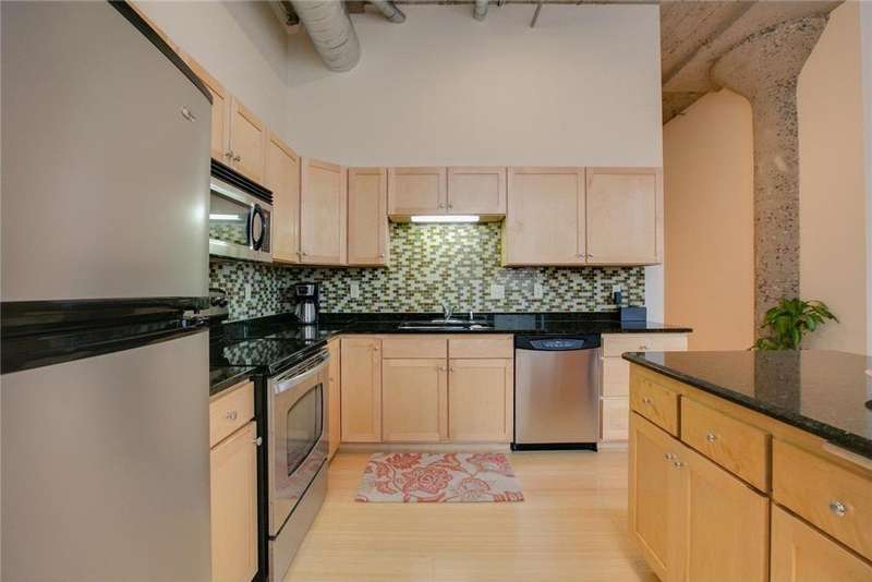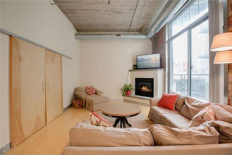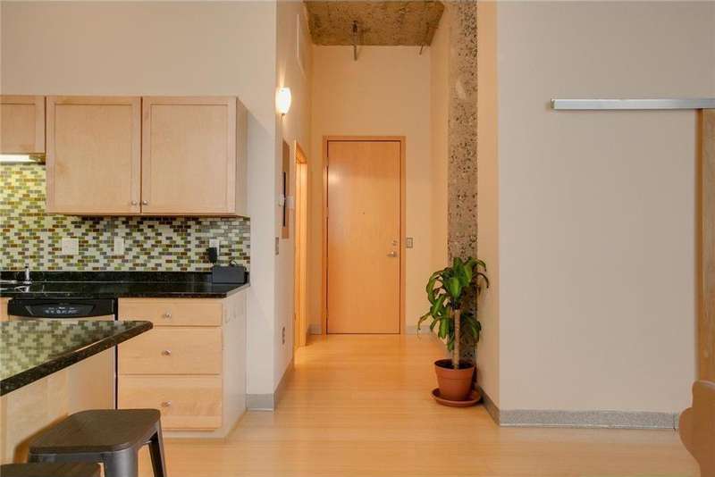 Open 1 bedroom floor plan with gas fireplace, private deck, granite counters, custom tile backsplash, and center island. Exposed brick walls, oversized windows, rooftop deck with panoramic views of the city, one block from skyway. 1 heated parking stall included with monthly rent. Tenant responsible for application fee and move in/out fee. Pet deposit may apply. One block from Skyway. Parking stall in building next door.