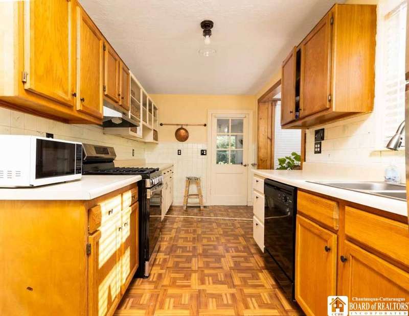 Welcome this charming late comer, a move-in ready, meticulously owned and completely updated 3 bedroom, 1 and a half bath Cape cod style home located in Dunkirk. Numerous improvements both big and small include all new windows 2023, matching roof replacements for home and garage 2023, fresh paint interior and exterior, new thermostat 2024, updated central air 2024, full basement, new main breaker 2021 to name a few. All appliances included 2021, new curtains and blinds (some still in their boxes) included, new matching cabinet hardware in kitchen, new electric garage door w/opener 2021, new exterior doors 2021, new Toro riding lawn mower 2021 and a new Amish built shed to put it in 2021! With the 20,000 square foot 2-parcel lot the large back yard can easily handle pets, entertaining, gardening, or anything else that requires lots of space. Original hardwood floors, new sump-pump 2024, refreshed plaster walls, and extra 2nd floor storage closet. Brand new furnace installed on 10/24/25. Request a showing at your earliest convenience.