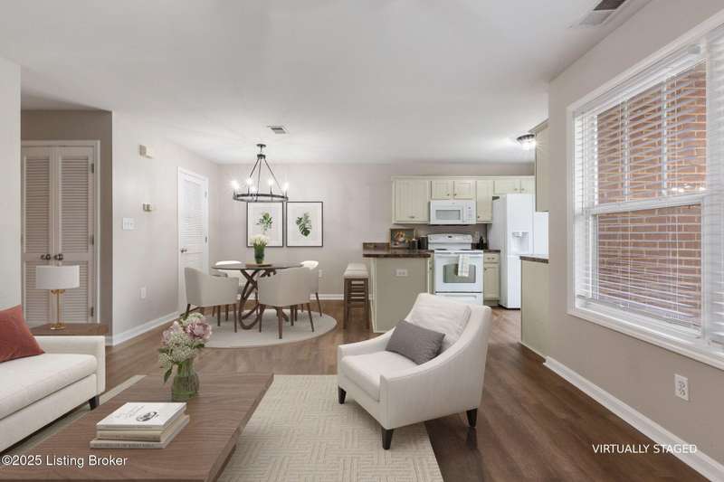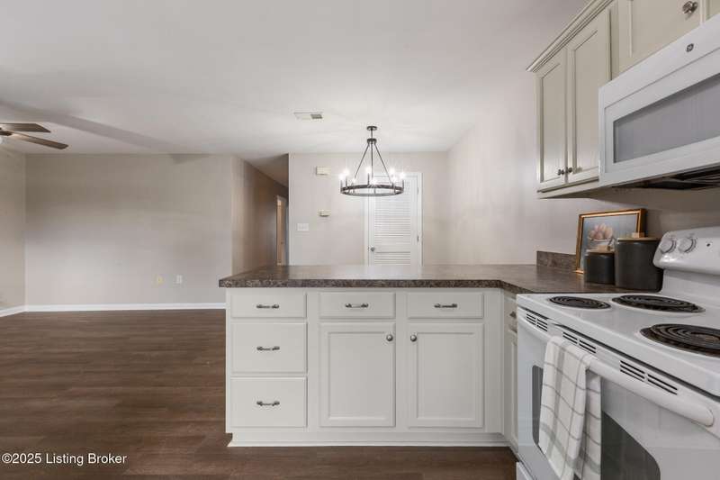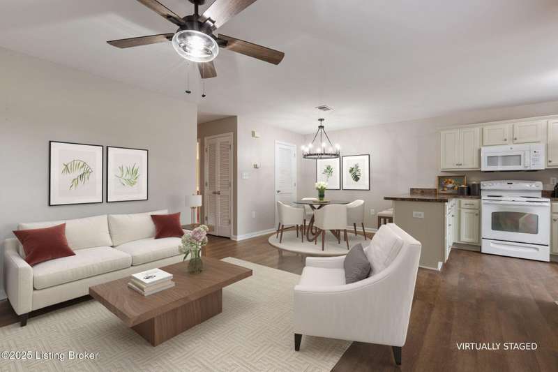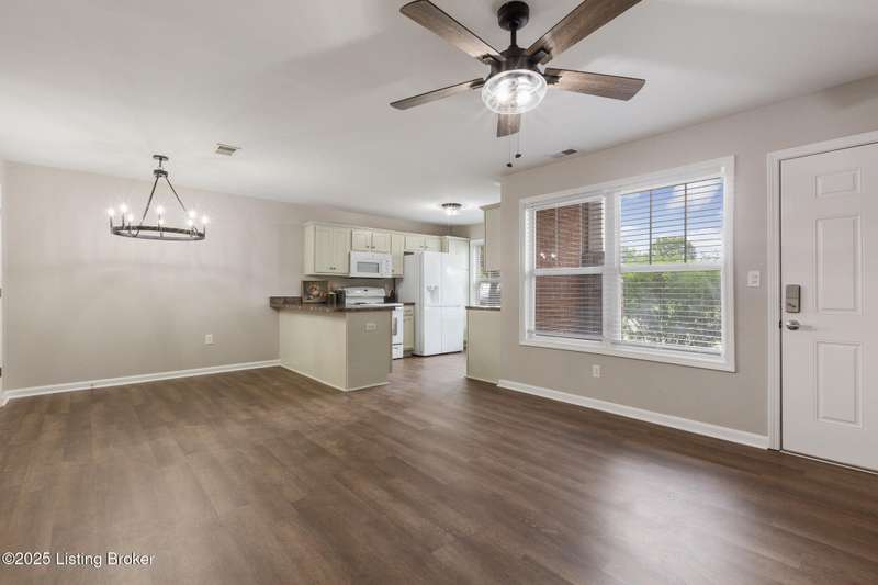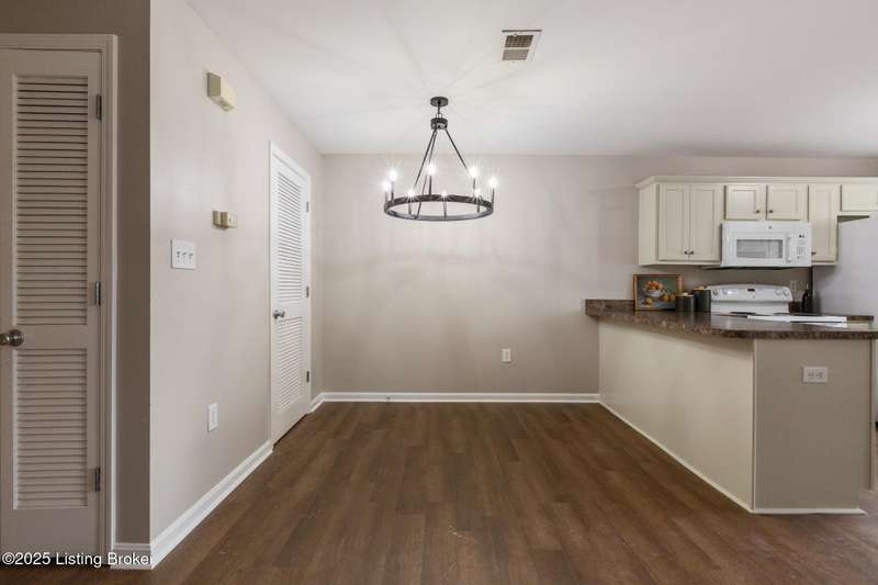 Welcome to this fabulous first floor unit in conveniently located Falcon Crest. Tucked away under one of the building stairwells, the private entrance is comfortable, covered, and cozy, and leads into a recently renovated condo perfect for the Buyer craving ease of living at a wonderful price point. Inside, new flooring stretches through the open living, kitchen, and dining rooms, and fresh paint on the walls as well as on the brightened kitchen cabinetry. This workspace combines form and function, and stays airy-feeling and bright, thanks to tall, front-facing windows. Down the hall, the primary bedroom sits at the rear of the unit, and is larger than you'd expect. With lovely tray ceiling, large, step-in closet with double shelves, and a comfortably-sized en suite bath, this space will serve as the perfect getaway for the homeowner at the end of the day. A second bedroom has double closet, and close access to the full hall bath. An in-unit laundry closet with new stackable washer and dryer ensures convenience, and stays hidden away in the hall. Updated throughout with new lighting, flooring, and paint, and located conveniently close to Snyder at Preston, this one is sure to check all of the right boxes.