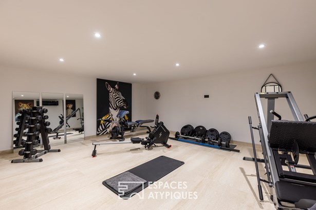 The interior layout emphasises spaciousness and fluidity, enhanced by high-end features and materials. The entrance opens onto a light-filled living area, centred around a lounge, an open-plan kitchen and a dining area facing the garden and swimming pool. The layout allows for fluid movement, conducive to a convivial lifestyle. A large master suite offers a comfortable sleeping area with a bathroom equipped with a double shower, a bathtub and a custom-made dressing room. Two other bedrooms, each with their own bathroom, complete this sleeping area, ensuring privacy for each occupant. A laundry room completes the everyday functionalities. In the basement, a wine cellar and a gym add a leisure and relaxation area to this already very complete house. A double garage and two parking spaces complete the amenities.