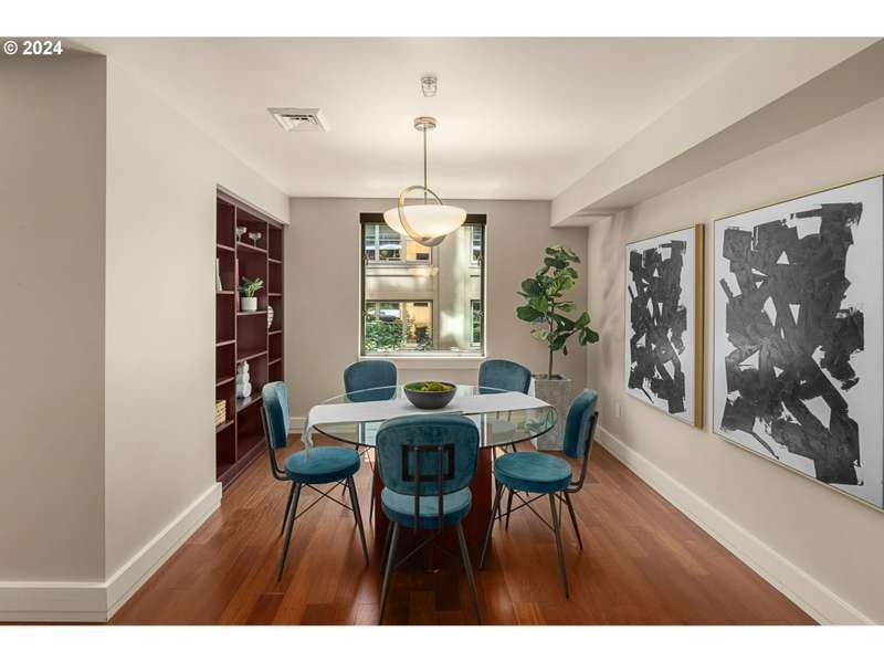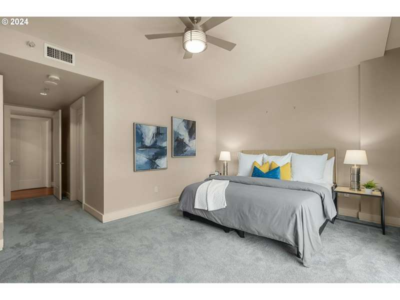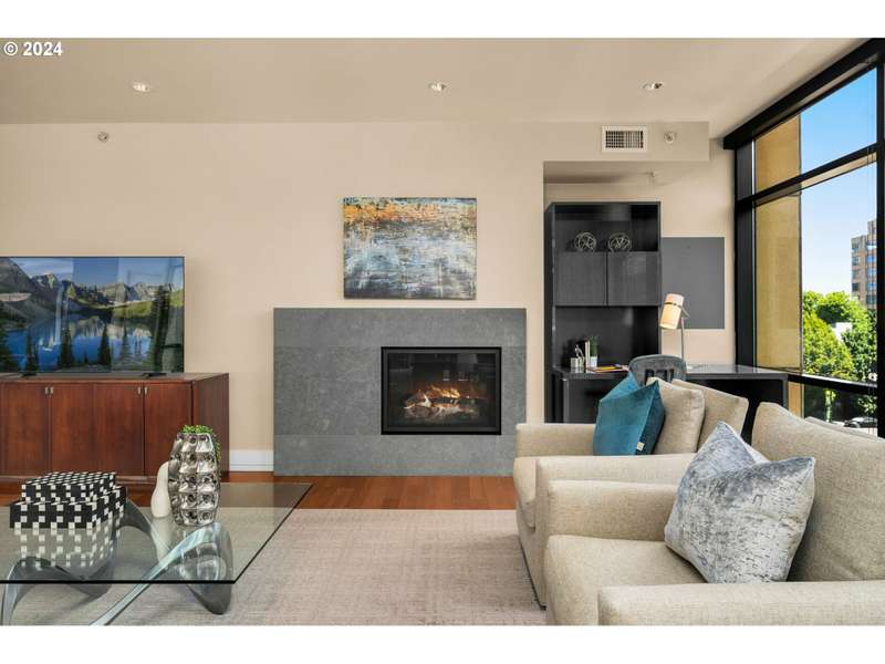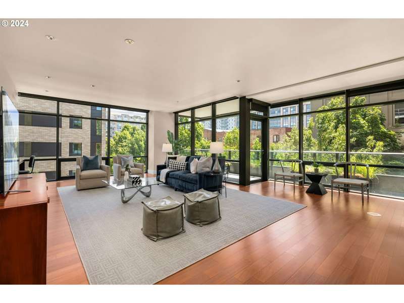 A stunning luxury home in one of the Pearl's most desirable buildings, The Casey. This 4th floor SE corner home features elegantly proportioned rooms and a smart layout - an understated formal entry leads to the open concept living area - complete with exotic hardwood floors, high ceilings, and walls of glass that showcase the views of the neighborhood around you. The living space is anchored by a bold marble fireplace and also offers access to a private patio with gas and electric hook ups. Top of the line kitchen features incredible amounts of storage, a center island, quartz counters, as well as Miele, Sub-Zero and Wolf appliances. Primary suite has a walk in closet and an elegant stone bathroom with a double vanity, soaking tub, and separate shower. Guest bedroom is also a suite. Spacious utility room offers extra storage. Deeded storage unit is conveniently located on the same floor as the unit! Top level service and security from full time building concierge and security. Includes 2 deeded parking spaces.