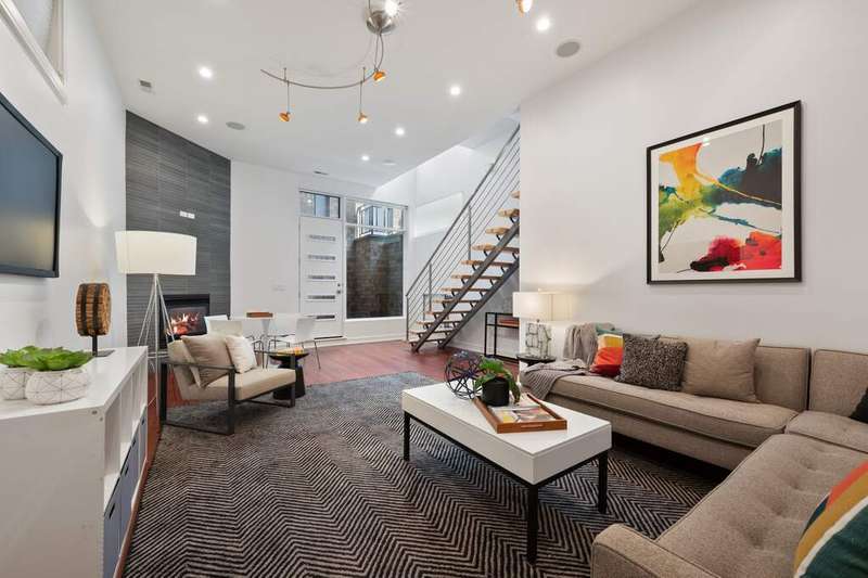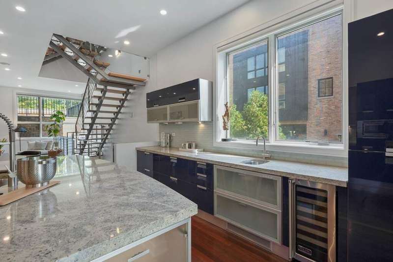 Welcome home to this sprawling modern oasis with five bedrooms, 3.5 bathrooms, a family room, dedicated office, wine cellar, and sauna. Located in the sought-after Pritzker School District, this over 5,000 sq ft modern masterpiece is just steps from Division Street and all the best that Bucktown and Wicker Park have to offer. Soaring ceilings throughout (10-12 feet) create an airy, dramatic feel. The ideal layout includes 4 bedrooms and a full laundry room on the upper level, along with multiple outdoor spaces-deck over the garage and a rooftop with unobstructed panoramic city views all year round. Light floods the home from every direction, thanks to a rare rear exposure and neighboring side yard. The chef's kitchen features professional-grade granite countertops, Arclinea cabinetry, Miele and Sub-Zero appliances, and opens to both the living room with fireplace and a stunning family room with separate dining area. This large and perfectly appointed kitchen makes cooking and entertaining a true experience. The primary bedroom provides you with serene privacy and the ultimate place for relaxation. Your en suite primary bath is truly spa-like, with a separate soaking tub, steam/shower system, and radiant heated floors. The incredible lower level includes a guest suite, a nearly 400-bottle brick wine cellar, second laundry center, and sauna. Zoned HVAC and a 2-car garage complete this exceptional home. No detail soared with recent updates to include new water heater, snow melt on stairs and walkway to house, newly installed decking on rooftop and additional decking and netting installed on garage roof. Ideally located between the intersection of Milwaukee Avenue/Damen Avenue and Western Avenue, near the North Branch of the Chicago River and the 606 Trail, enjoy walking to top rated restaurants, shopping, easy access to parks, public transportation and an abundance of activities.