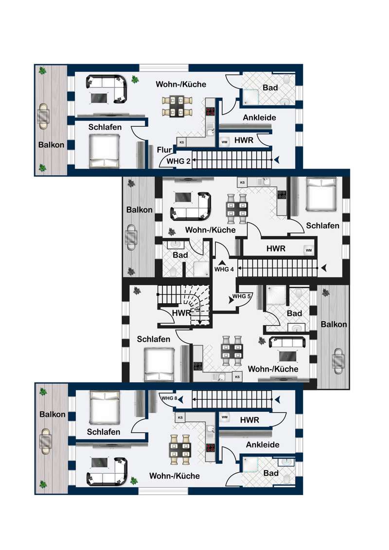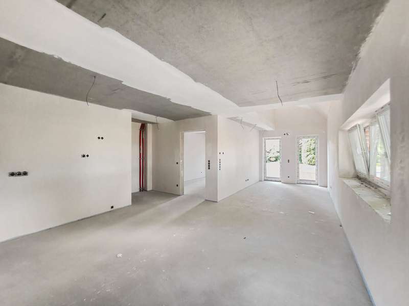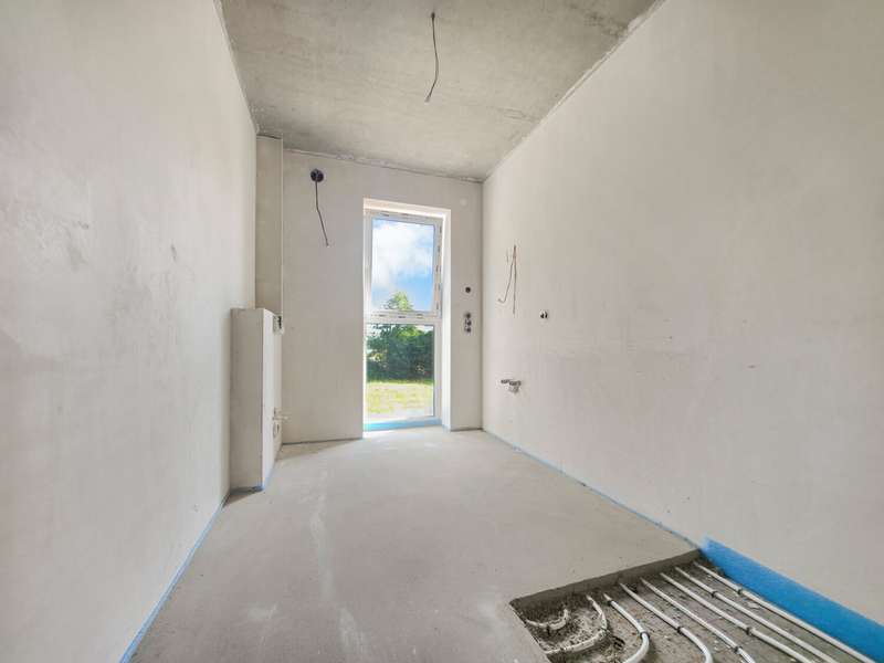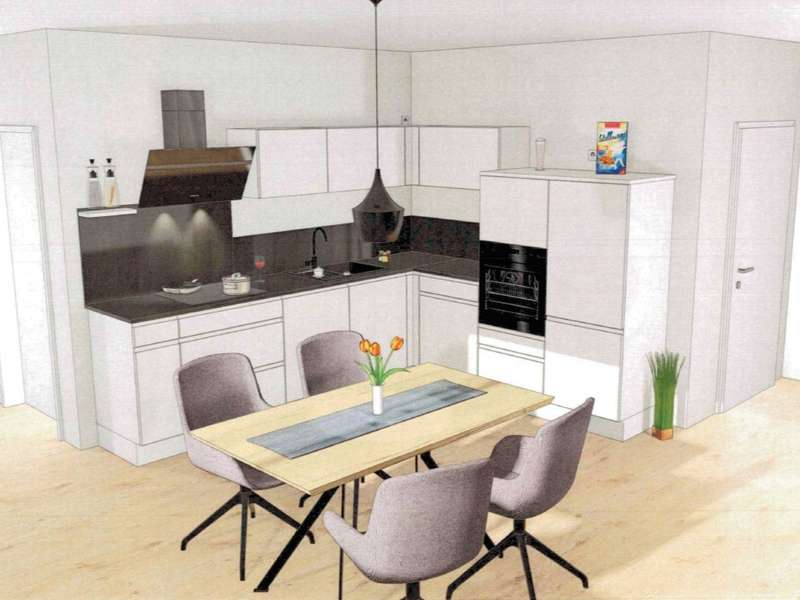 An apartment building with eight residential units in an energy-efficient KFN (climate-friendly new build) design and exclusive fittings is being built in a wonderful residential location. Here you will receive an offer for the two outer 3-room maisonette apartments with an additional gallery, each with a living space of approx. 114 m². The open-plan living concept in combination with floor-to-ceiling window elements, light-colored walls covered with non-woven paint and stylish tiled and vinyl floors create a pleasant living atmosphere. The west-facing balconies invite you to spend cozy evenings with friends or family. The modern kitchens are kept in elegant white and fitted with dark worktops. High-quality built-in appliances are naturally included in the fittings. In addition to a comfortable bedroom, the apartments have an exclusively equipped daylight bathroom with a floor-level rain shower and modern fittings. There is also a separate utility room with connections for a washing machine and dryer. You can reach the top level of the apartment via the staircase. In addition to a room, the gallery is also available here. This area has plenty of natural light and is ideal as a workspace. Each apartment comes with a parking space for €50/month, where you can park your car conveniently. An additional parking space can be booked for €30 per month. If you already own an electric car, you can install your own wallbox, as the electrical preparations for this have already been made. A shared bicycle shed is also available to residents. Further highlights of your potential new apartment can be found in the separate fixtures and fittings description. All eight apartments are available for rent. The apartment sizes range from 75 m² to 114 m². You are also welcome to take a look at our other offers. All apartments can be occupied from 01.11.2025.