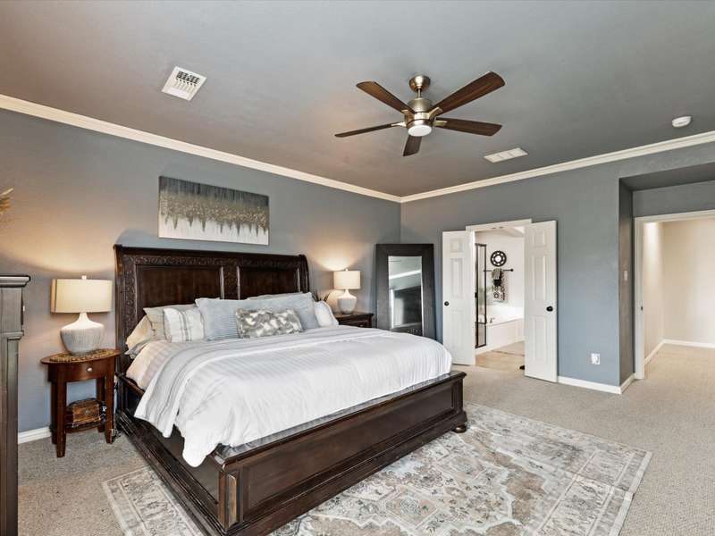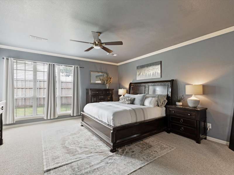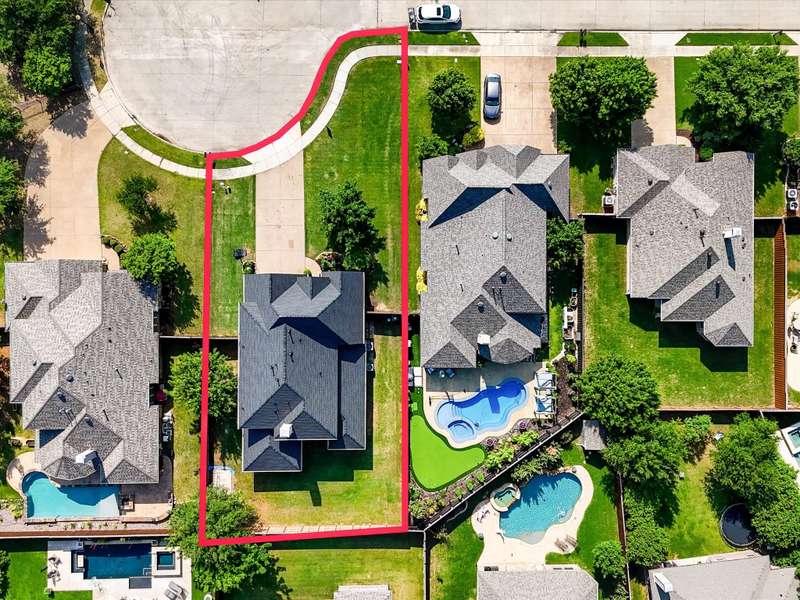 Welcome to this beautifully updated 4-bedroom, 3.5-bath home offering more than 3,000 sq ft of comfortable living space in the highly sought-after Prosper ISD. Situated on a generous lot at the end of a quiet cul-de-sac, this home features fresh interior paint, updated lighting, and a brand-new roof (2025). The open-concept layout includes a dedicated study, multiple living areas, and a spacious kitchen that flows into the main living space, perfect for everyday living and entertaining. The primary suite offers a private retreat, while secondary bedrooms provide plenty of room for family or guests. Enjoy a large backyard with a board-on-board fence and enjoy the added bonus of an epoxy-coated garage floor. Neighborhood amenities include an HOA-maintained pool, green space, and a pocket park. Close to the Dallas North Tollway for a seamless commute and convenient access to shopping, dining, and schools. This move-in ready home offers space, style, and a prime location.