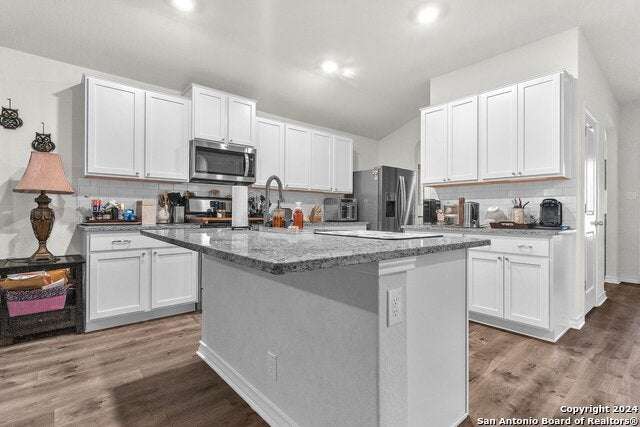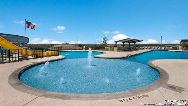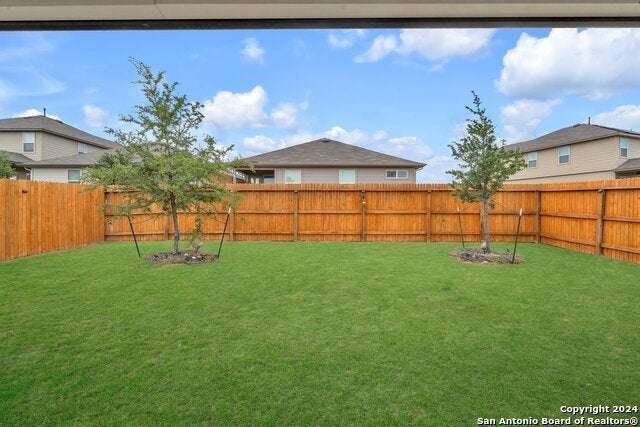 **Solar will be paid off at close, and offering $2,000 towards concessions** This charming single-story home showcases the popular Brown floor plan by DR Horton, offering 3 bedrooms and 2 full bathrooms, 2-car garage layout. Designed with you and your family in mind, this layout features a separate dining space that leads to an open kitchen. The kitchen includes plenty of cabinet storage, granite countertops, subway tile backsplash, stainless steel appliances, gas cooking range, and deep kitchen island facing the living room. The large first bedroom suite is located off the family room and features a double vanity sink, separate tub and walk-in shower, private water closet, and a spacious walk-in closet. Additional features include solar panels, an 8' x 24' covered patio, a water softener, reverse osmosis, solar screens, 9-foot ceilings, 2-inch faux wood blinds throughout the home, luxury vinyl plank flooring in the entry, family room, kitchen, and dining area, and ceramic tile in the bathrooms & utility room. This home is in close proximity to amusement style pool in community (and a second community center being built), with gate access. Conveniently located close to shopping, dining, Lackland AFB and top-rated schools. Ideal for anyone! Don't miss out on this gem! Schedule a tour today!