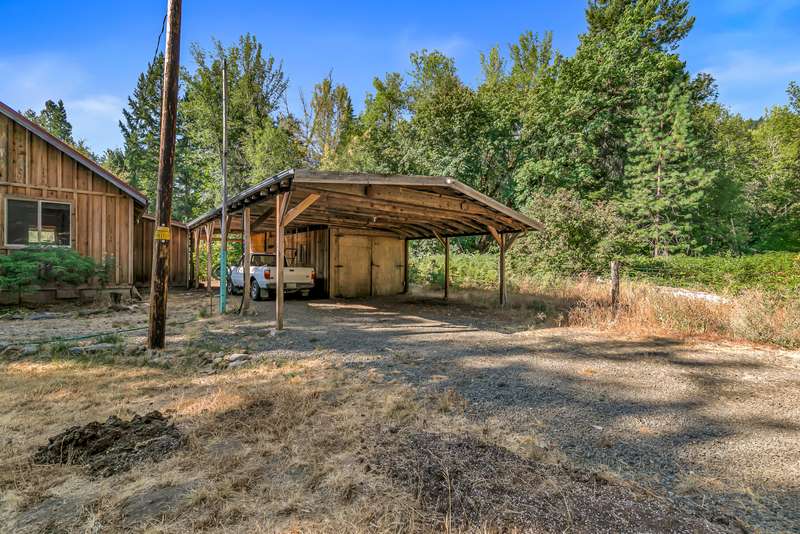 Location, location, location! Looking for a rural getaway at an affordable price? If so, this is the one for you! This charmer features 1 large bedroom, 1 full bathroom, 687 sq ft, spacious living room, galley kitchen (all appliances included), laundry area, woodstove, detached shop (multiple rooms) w/ carport, versatile barn, gated access, ample storage within the attic space, & much more! On top of all this, you have 4+ acres of usable wooded land w/ Morrison Creek flowing (flows year round) through the property. Perfect opportunity for anyone looking to get lost in the woods and live in a beautiful setting! This one won't last long on the market, so contact your agent today for a personal tour!
