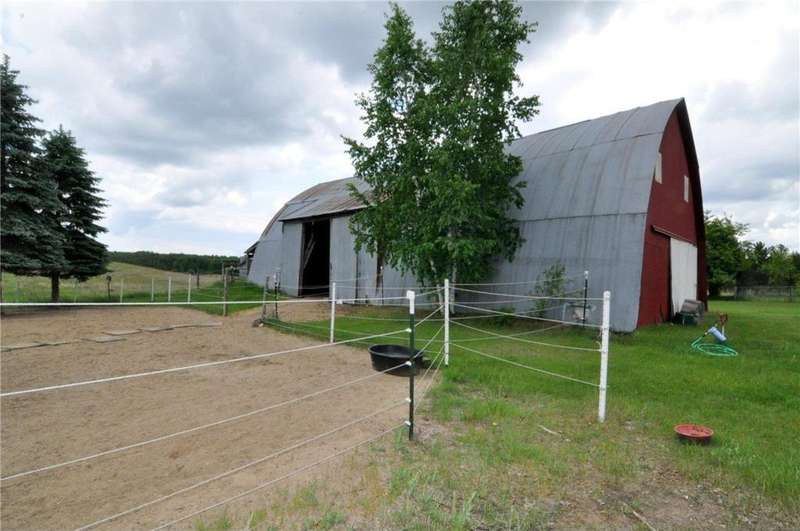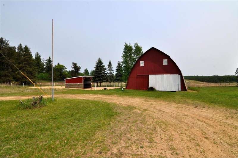 Embrace the rural lifestyle with this picturesque 18-acre hobby farm, complete with a barn, chicken coop, and partial fencing—ideal for livestock or gardening enthusiasts. The 3-bedroom, 2-bath home offers a spacious living room and family room, featuring a Wilkening fireplace with a newer firebox for cozy evenings. The updated kitchen includes appliances, while the forced air furnace ensures efficiency. A 2-car garage with a heated bonus room provides extra space for projects or storage. Outside, you'll find fruit trees, berries, and perennials, adding charm to the landscape. The large, level fenced backyard transitions into rolling acreage. The barn features electricity and an upper level for storage, sand paddock with electric fence and run-in shed. New drilled well with a hydrant for water at the barn.