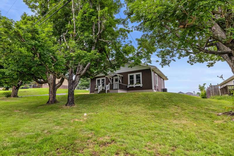 THIS 1930s SWISS/GERMAN INSPIRED BUNGALOW has been thoughtfully renovated to include all of the financial security and peace of mind in the new roof, new windows, and newer heat pump while preserving the original character of nine-foot coffered ceilings, extensive wainscotting, and rustic cedar siding. You will love how the single level living spills effortlessly out onto a private covered veranda, expansive deck, and the double lot with a he-shed AND she-shed providing options for hobbies, workspace, or extra storage. Take advantage of being within walking distance of Gypsy Hill Park for picnicking, swimming, and a live music venue. Perfect as a getaway to historic Staunton, short term rental investment, or character rich permanent residence; this home offers the perfect blend of history, charm, and modern comfort. Don't hesitate!