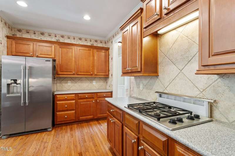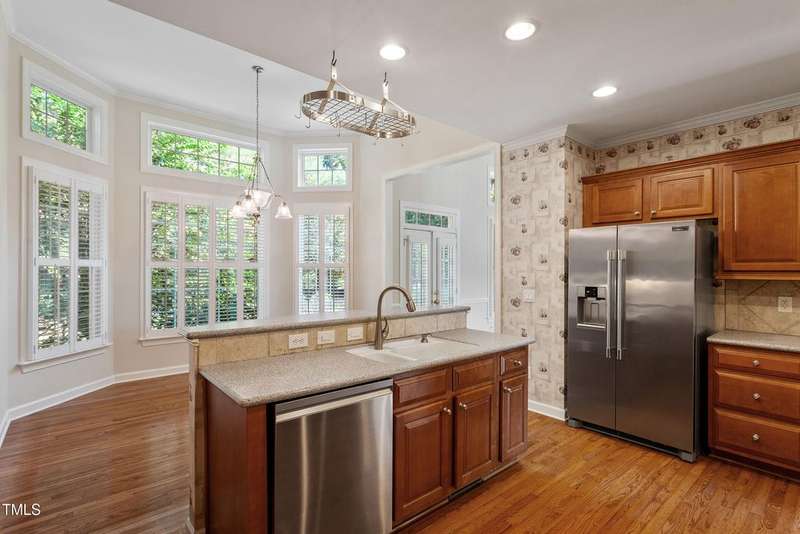 OFFERING A $6,000 FLOORING CONCESSION to help make this well-built Wakefield home your own. Located on a quiet cul-de-sac in the Middleton neighborhood of Wakefield Plantation, this 4-bedroom, 3.5-bath John Wieland home combines classic architecture, thoughtful updates, and a backyard built for entertaining.The two-story great room features vaulted ceilings, built-ins, and a floor-to-ceiling stacked stone fireplace. A separate dining room and den provide flexible space for gatherings or work-from-home needs. The kitchen is equipped with dual Dacor ovens, a gas cooktop, and newer appliances, ready for your personal touch.The main-floor primary suite includes dual walk-in closets and a large bath with soaking tub and separate shower. Upstairs offers three additional bedrooms, two full baths, and an open loft area ideal for study or office space.Outside, the professionally landscaped yard includes an irrigated Zoysia lawn, natural stone walls, a waterfall feature, and a slate patio with a built-in natural gas grill (2025) ? perfect for outdoor dining.Major updates include a Landmark Pro roof with transferable warranty and seamless gutters (2018), Anderson A-Series windows (2018), dual-zone HVAC systems (2024), water heater (2020), exterior paint (2018), and new appliances (2024-2025). Plantation shutters throughout add timeless style and privacy.This home has been well cared for by its original owners and offers a strong foundation, desirable location, and lasting value in one of North Raleigh's most established communities.