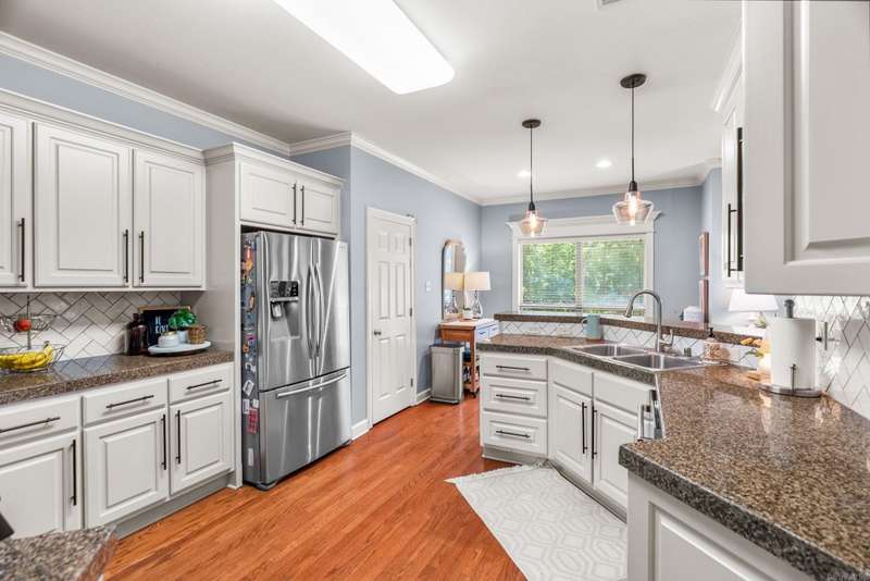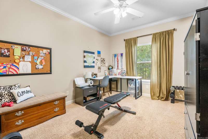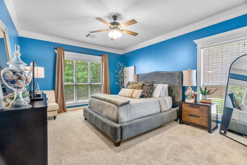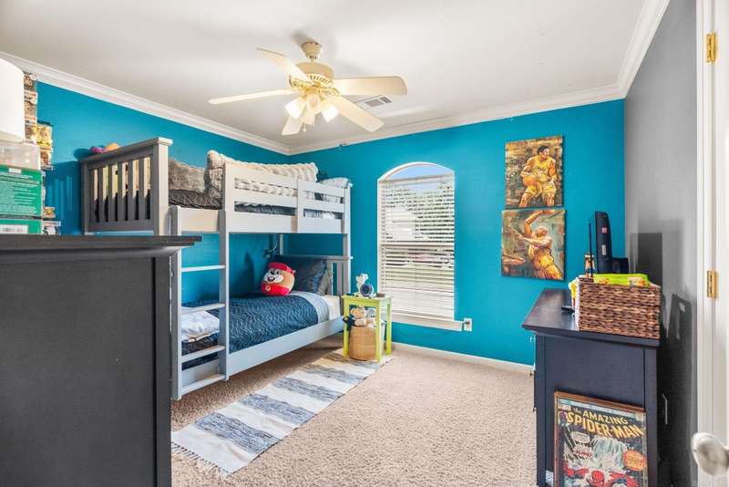 Spectacular Brick two story home in wonderful condition inside and out! Located in beautiful Woodlands Edge this home offers an exceptional floor plan and the perfect setting for family living and entertaining friends. Step inside to view the handsome two story entry, spacious formal dining and great room with soaring stone fireplace and access to sun terrace. Light filled gourmet kitchen with breakfast area. Luxurious spa inspired primary suite located on the main level with an additional guest bedroom/office and bath. Upstairs: Two large bedrooms and guest bath. Fabulous playroom/media. Fantastic terrace for grilling and enjoying the outdoors overlooking large tree shaded back yard. 2 car garage. A must see!