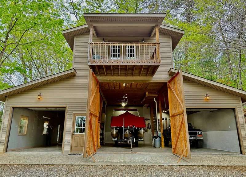 Exquisite Retreat with Income Potential ,as well as River & Mountain Views! Discover this beautifully appointed 2-BR 2-bathroom home w/ 1BR, 1-BR coach house, nestled in a serene, wooded setting with scenic river views! This unique offering blends charm, privacy, and versatility perfect for entertaining, multi-generational living, or continued use as an income-producing property!! The main residence welcomes you with a carpeted living room, featuring a cozy fireplace and flows into a custom kitchen with wood cabinetry,SS appliances, & beautiful hardwood floors! The owner's suite impresses with a wall of closets and private ensuite bath. Featuring Stackable washer and dryer .A 2nd BR and full guest bath are located on the lower level, with a separate entry, French doors, & flexible space ideal for a guest suite, office, or additional living area! The coach house apartment?situated above the garage offers its own private entrance, kitchen, open living area, walk-in closet, French doors leading to a charming balcony, and a double-stacked washer/dryer. The property's exceptional features continue with an expansive workshop, boasting an approx 44'x36' layout, 14' double-door center bay, & automatic 8'x10' doors on both sides?with plenty of indoor space for rv and or boat storage. Enjoy low-maintenance landscaping, neat walkways and gorgeous garden area, and fire pit area (perfect for gathering) . includes owned propane tank that conveys with sale, and is being sold fully furnished with appliances?a true turnkey opportunity! Option to buy Potential River front lot ? L152614A (negotiable). This one-of-a-kind property offers comfort, flexibility, and potential?whether for your own home a savvy investment, or both! In order to toggle between floors on between floors on the 3D tour please select Floor 1 or 2, using the ?Floor Icon?,select ?view dollhouse?, and then click on the symbol of a person in the left corner, and then select then click any room you wish to view!