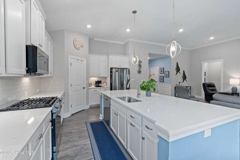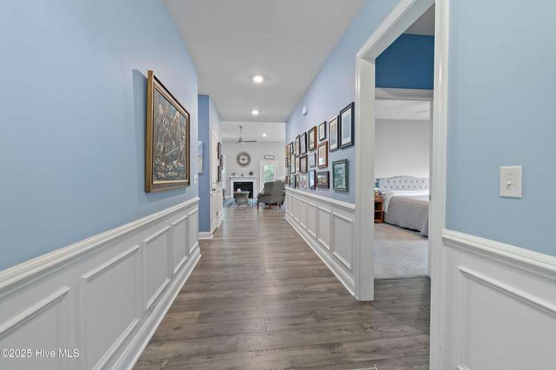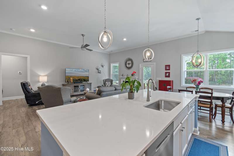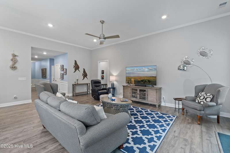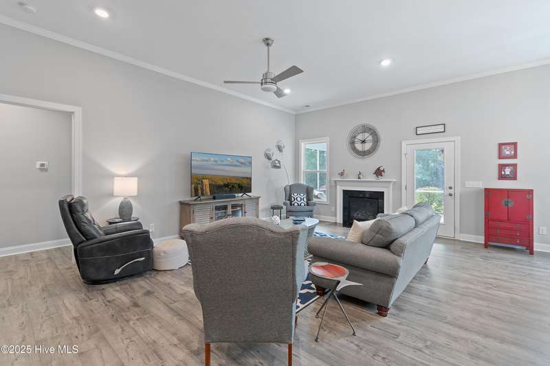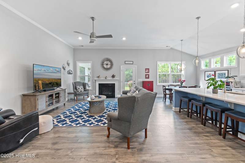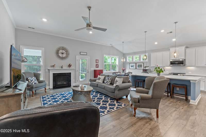 New Price will have this one moving fast! Great size and charming coastal home in The Hammocks of St. James Plantation. This delightful home offers a carefree lifestyle with modern amenities and a cozy, welcoming design. Featuring three spacious bedrooms and two full bathrooms, the property is enhanced by low-maintenance landscaping that adds curb appeal without the hassle. Step through the bright entryway, where custom wainscoting sets an elegant tone, and luxury vinyl flooring leads you past two sunlit guest bedrooms. Each bedroom boasts generous closet space and large windows that flood the rooms with natural light. They share a beautifully appointed hall bathroom with tile flooring and a tub/shower combo, combining style and functionality for family and guests. The foyer opens into an open concept living space that seamlessly blends the living room, dining area, and kitchen. The living room centers around a cozy gas fireplace, accented with sleek black tile and a classic wood mantle. The kitchen is a chef's dream, featuring a large island with counter-height seating, stone countertops, stylish pendant lighting, stainless steel appliances, a gas stove, tiled backsplash, ample cabinetry, and a walk-in pantry. The dining area, bathed in natural light, flows effortlessly into the enclosed screened porch, offering a serene space for entertaining or quiet relaxation. Step outside to a spacious backyard oasis bordered by mature trees that provide natural beauty and privacy. The screened porch and adjoining patio extend the living space outdoors, perfect for grilling, entertaining, or simply enjoying a peaceful afternoon with a book. The owner's suite is designed for comfort and relaxation. A tray ceiling adds an airy elegance, while the spacious walk-in closet offers ample storage. The luxurious ensuite bathroom features stunning tile flooring and shower surround, a built-in bench, convenient niches for toiletries, a dual sink vanity, private water closet, and dedicated linen storagecreating a spa-like experience within your own home. 3054 Beachcomber Drive is the perfect blend of coastal charm and modern comfort, offering an inviting design, luxurious features, and versatile spaces. Schedule your tour today and experience the relaxed, carefree lifestyle of the Seaside community in St. James Plantation. Don't miss your chance to make this coastal gem your next home and start enjoying everything St. James has to offer.